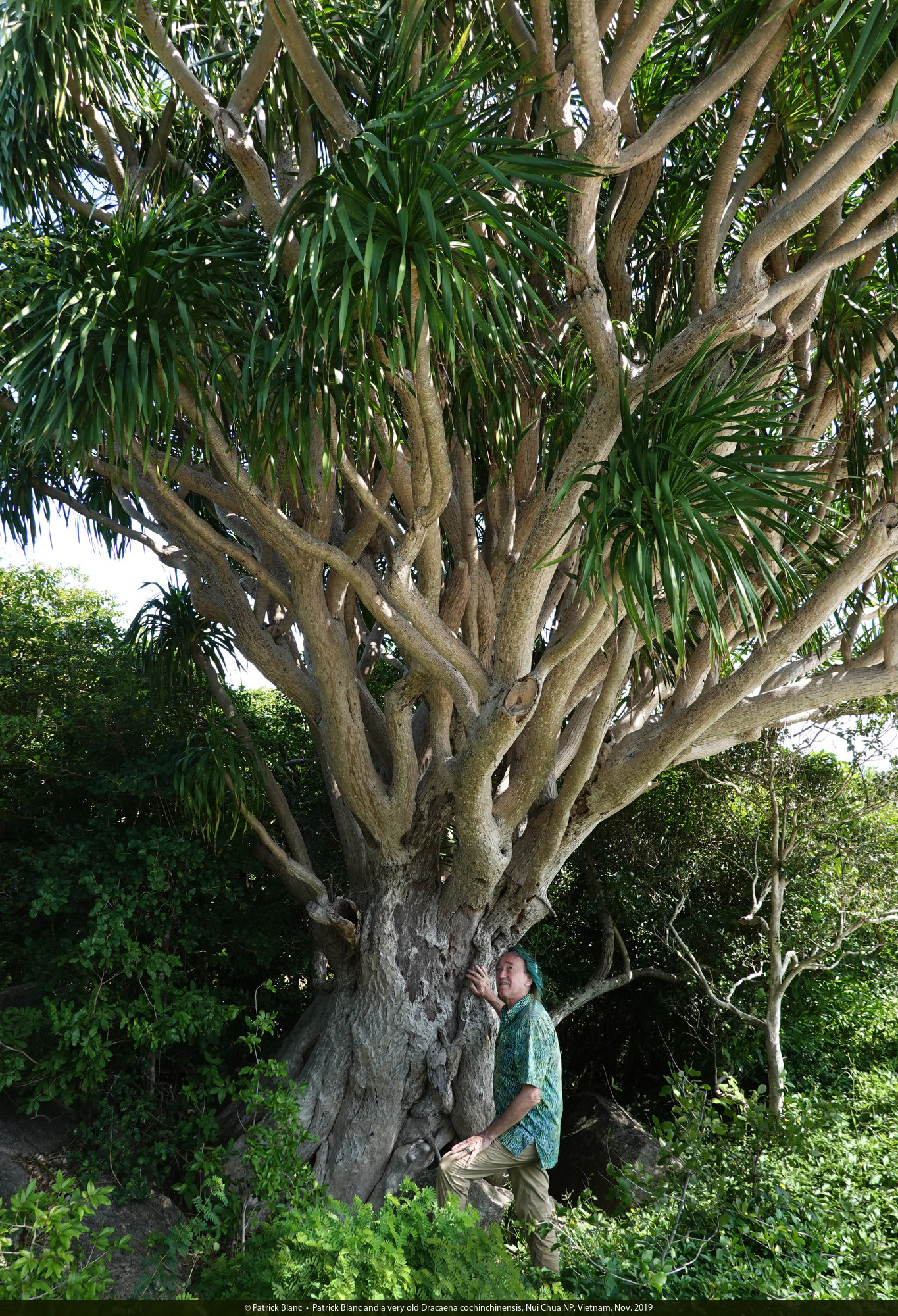 Patrick Blanc and a very old Dracaena cochinchinensis, Nui Chua NP, Vietnam, Nov. 2019