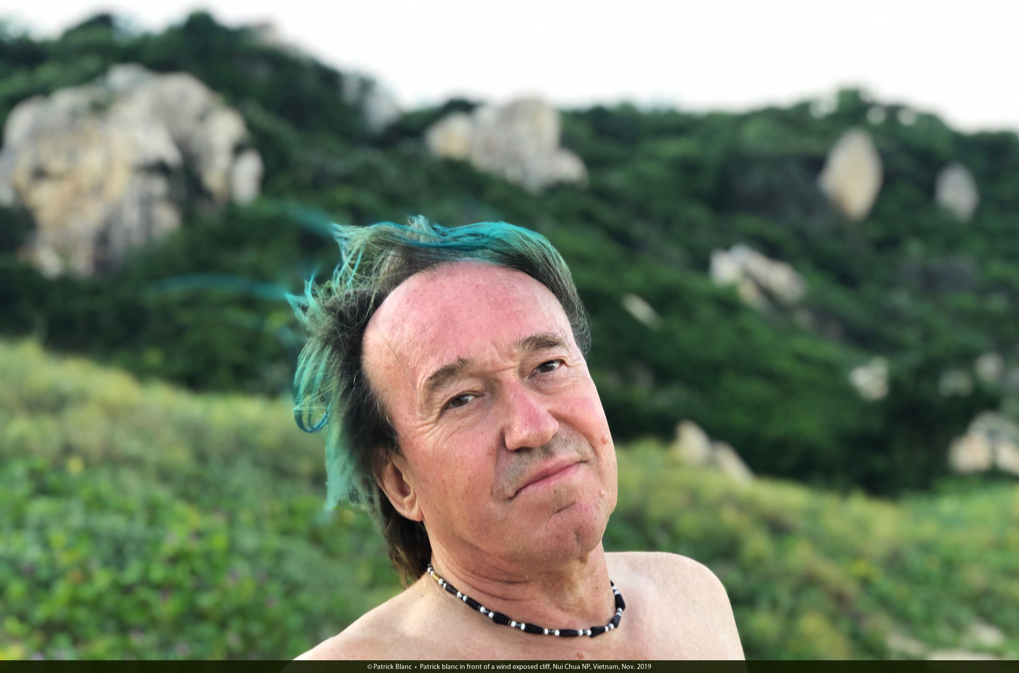 Patrick blanc in front of a wind exposed cliff, Nui Chua NP, Vietnam, Nov. 2019