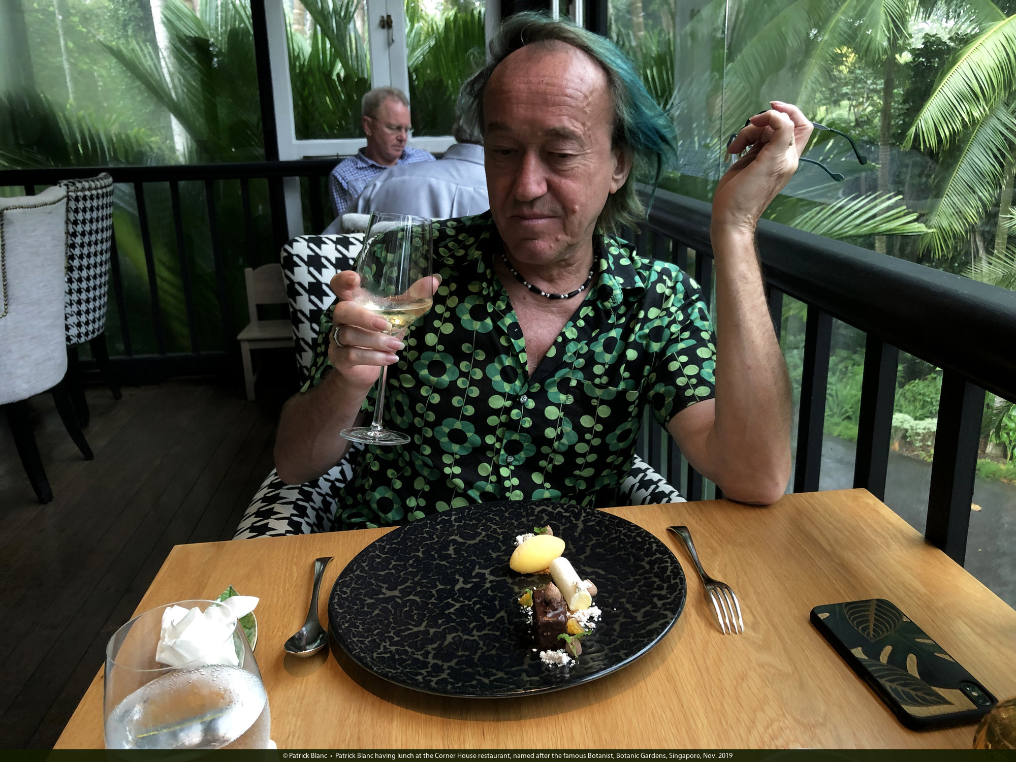 Patrick Blanc having lunch at the Corner House restaurant, named after the famous Botanist, Botanic Gardens, Singapore, Nov. 2019