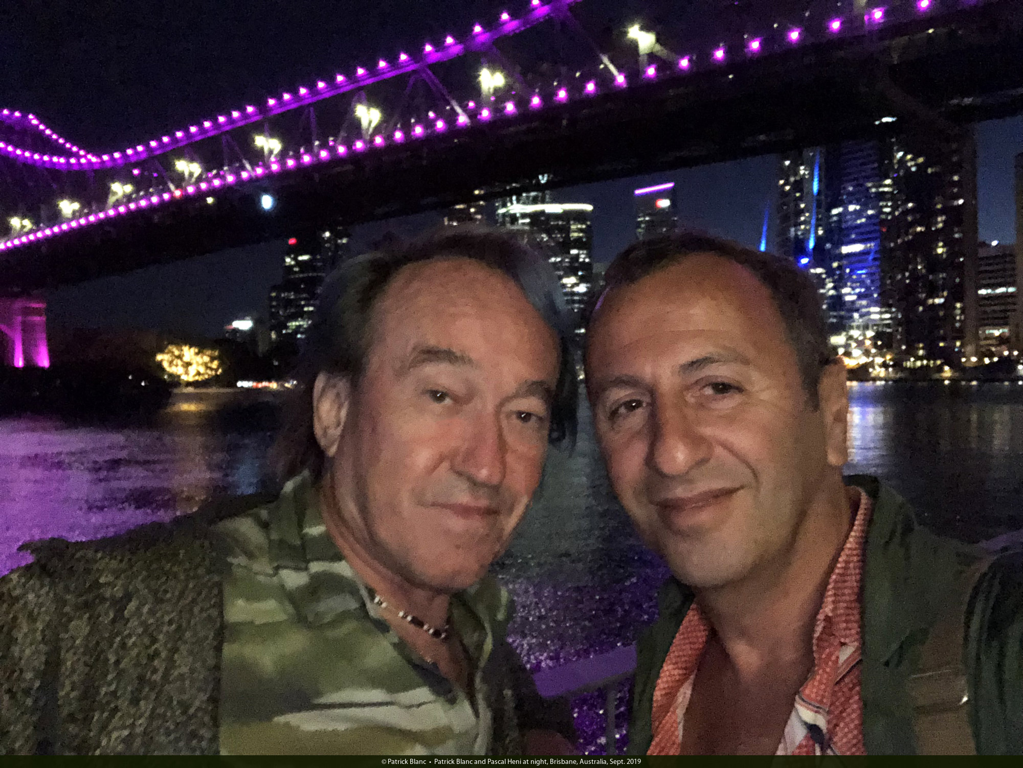 Patrick Blanc and Pascal Heni at night, Brisbane, Australia, Sept. 2019