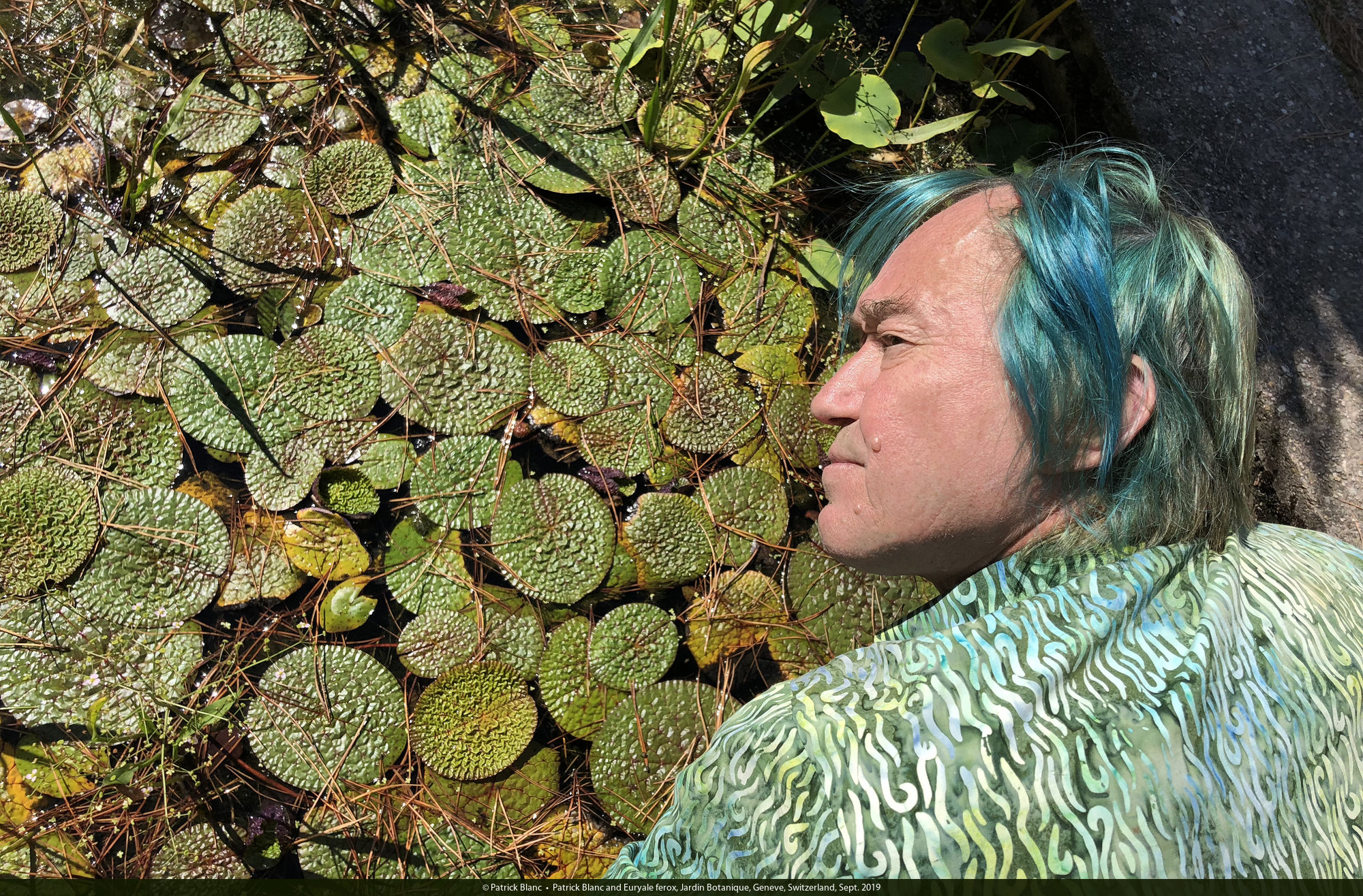 Patrick Blanc and Euryale ferox, Jardin Botanique, Geneve, Switzerland, Sept. 2019