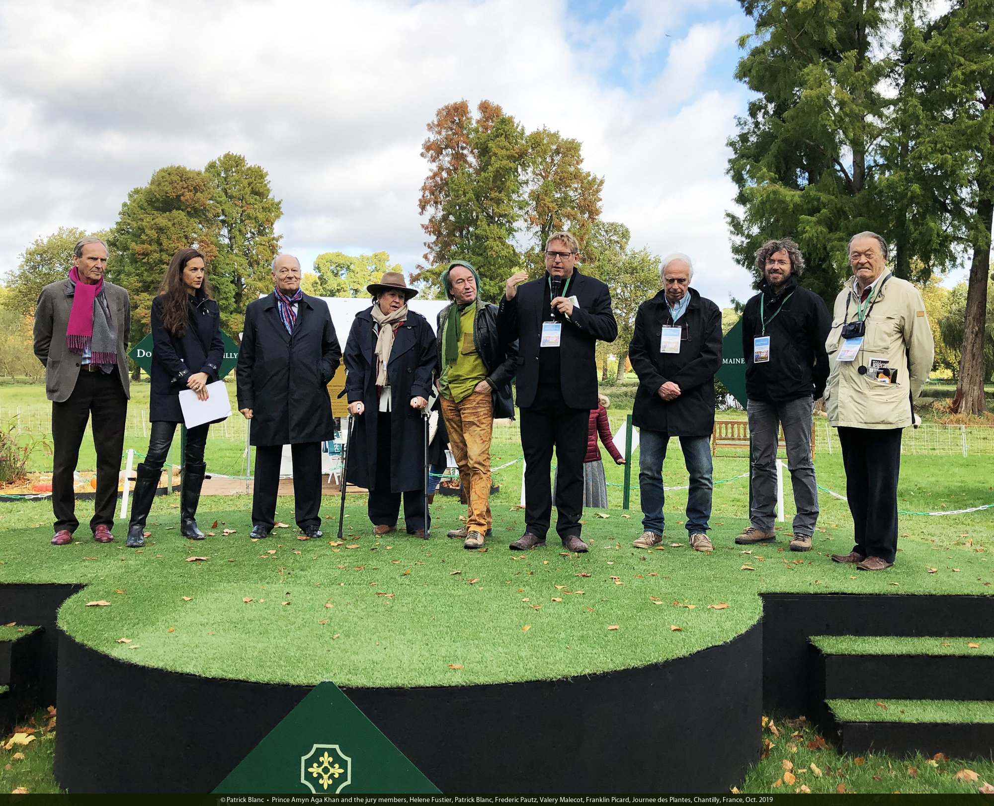 Prince Amyn Aga Khan and the jury members, Helene Fustier, Patrick Blanc, Frederic Pautz, Valery Malecot, Franklin Picard, Journee des Plantes, Chantilly, France, Oct. 2019