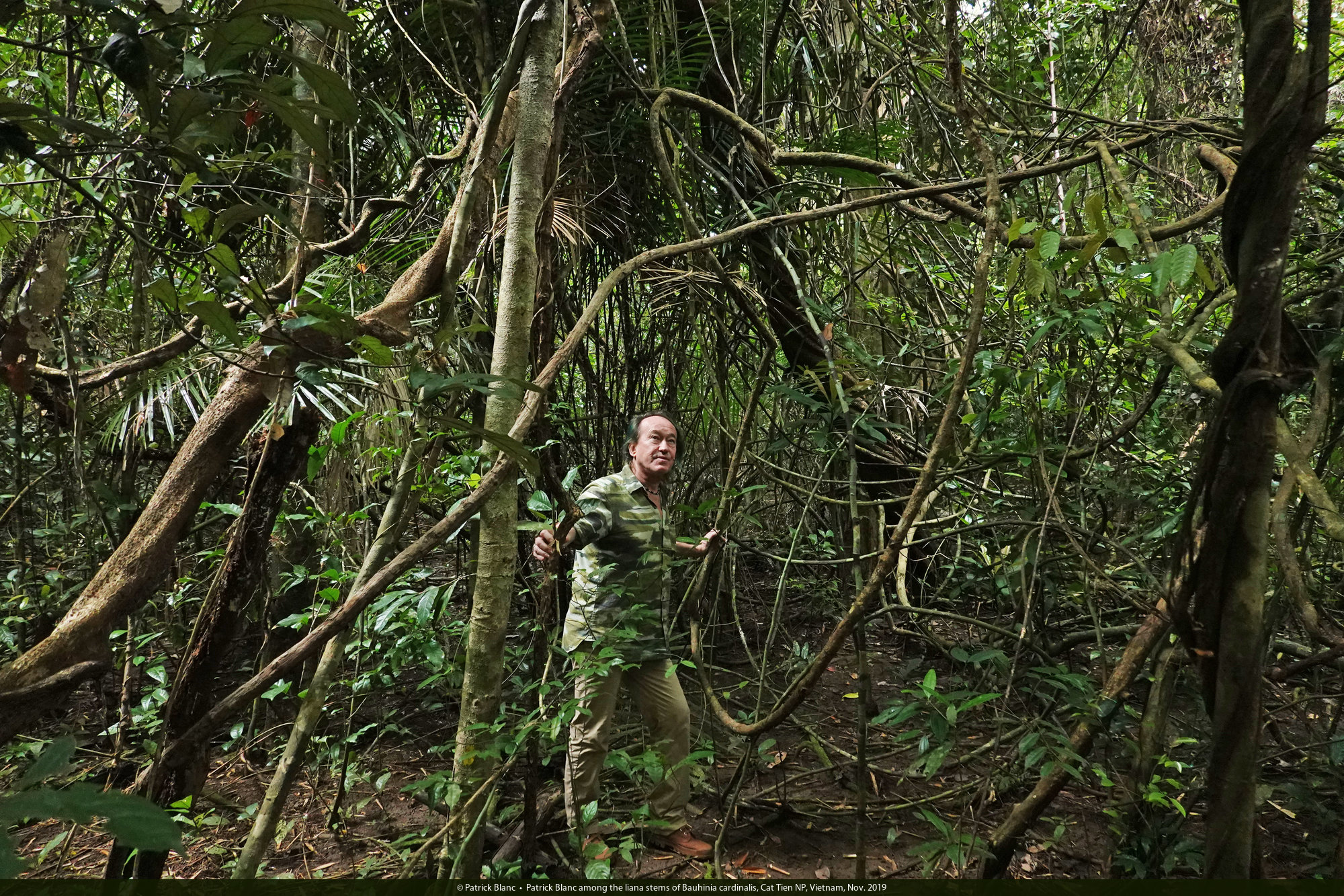 Patrick Blanc among the liana stems of Bauhinia cardinalis, Cat Tien NP, Vietnam, Nov. 2019