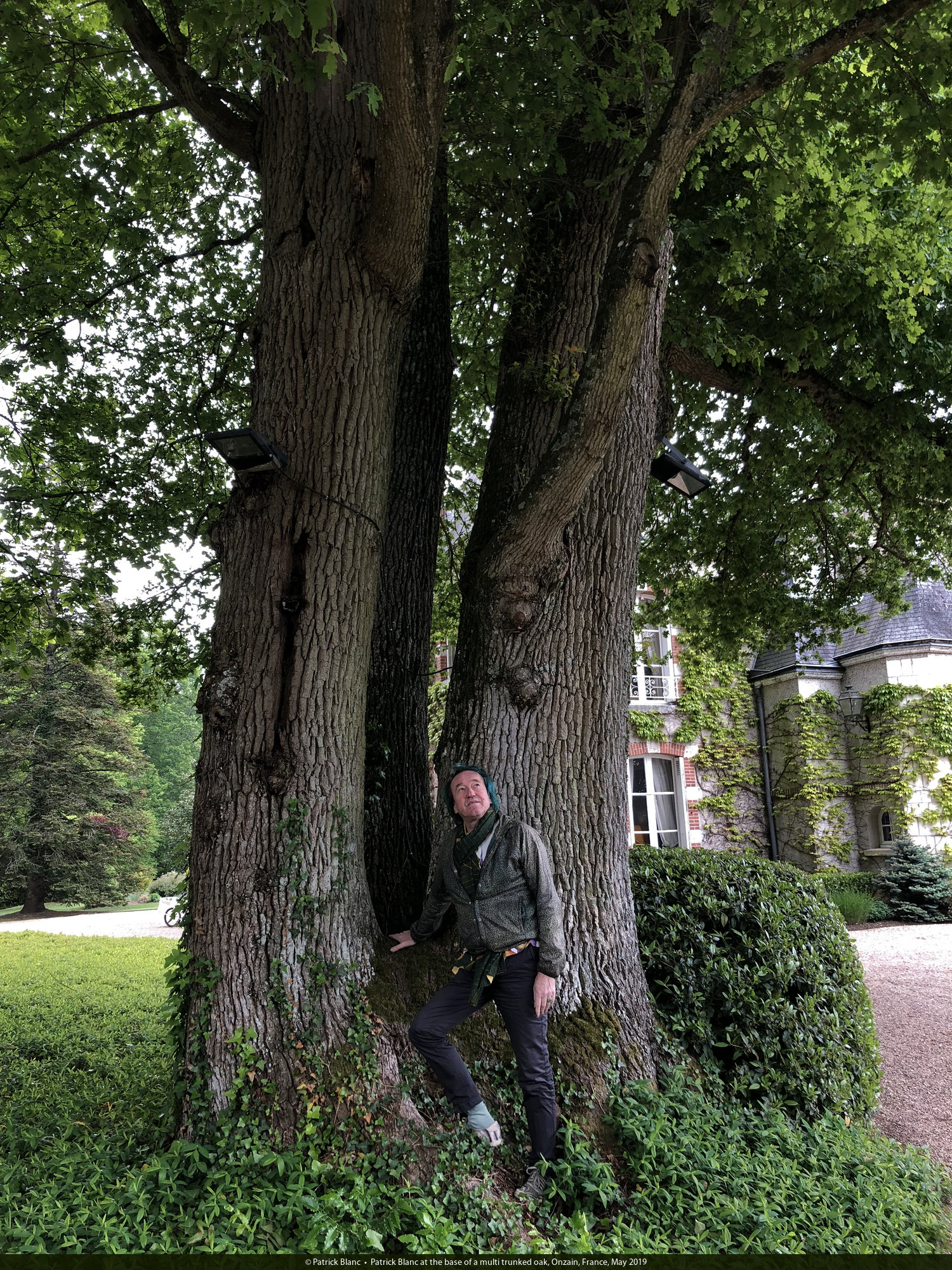 Patrick Blanc in a classical wooded park, Onzain, France, May 2019
