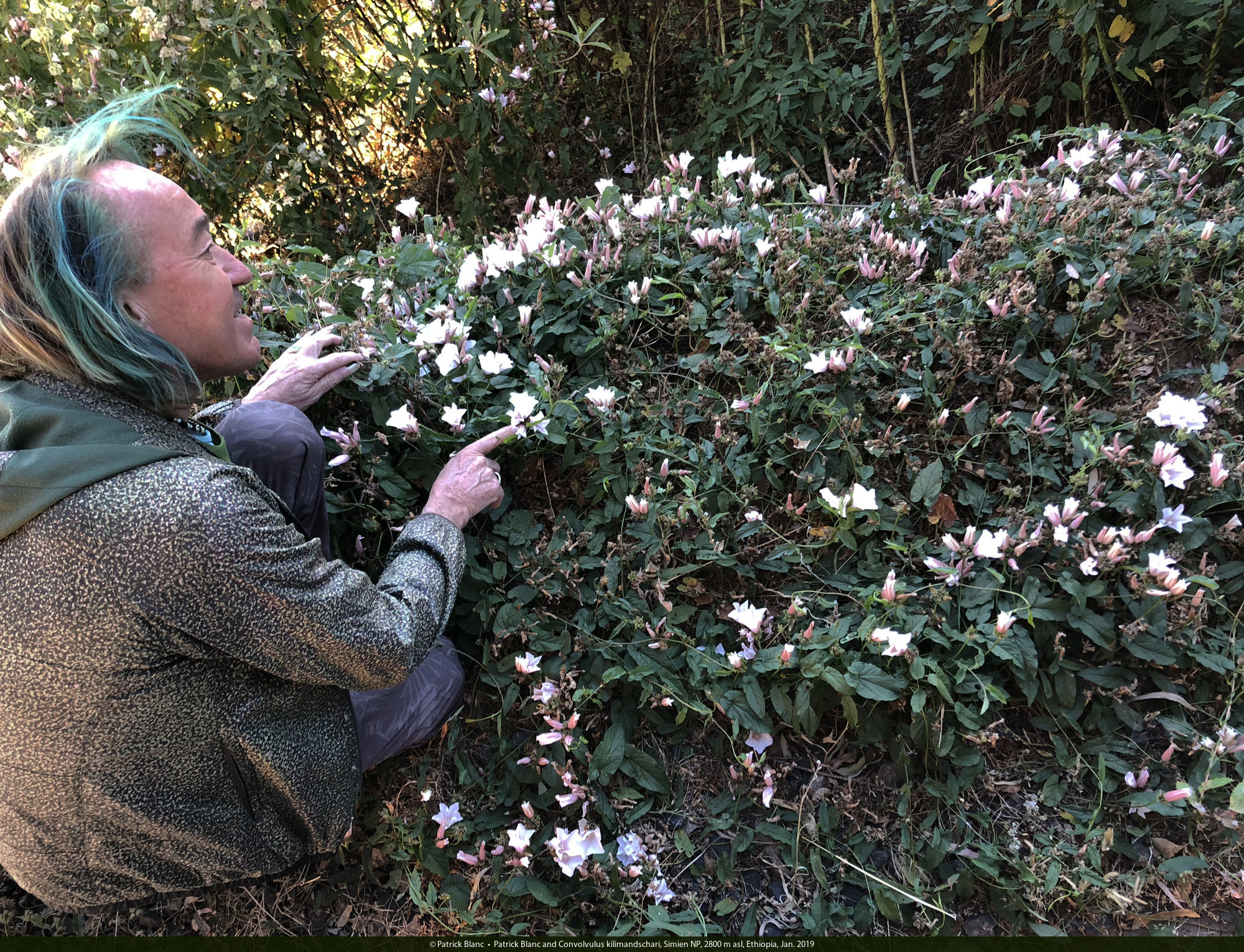 Patrick Blanc and Convolvulus kilimandschari, Simien NP, 2800 m asl, Ethiopia, Jan. 2019