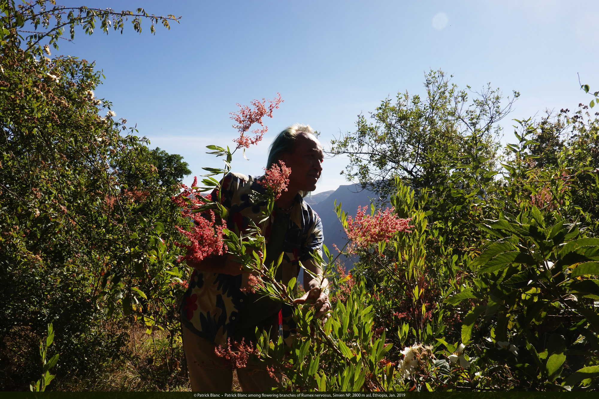 Patrick Blanc among Rumex nervosus inflorescences, Simien NP, Ethiopia, Jan. 2019