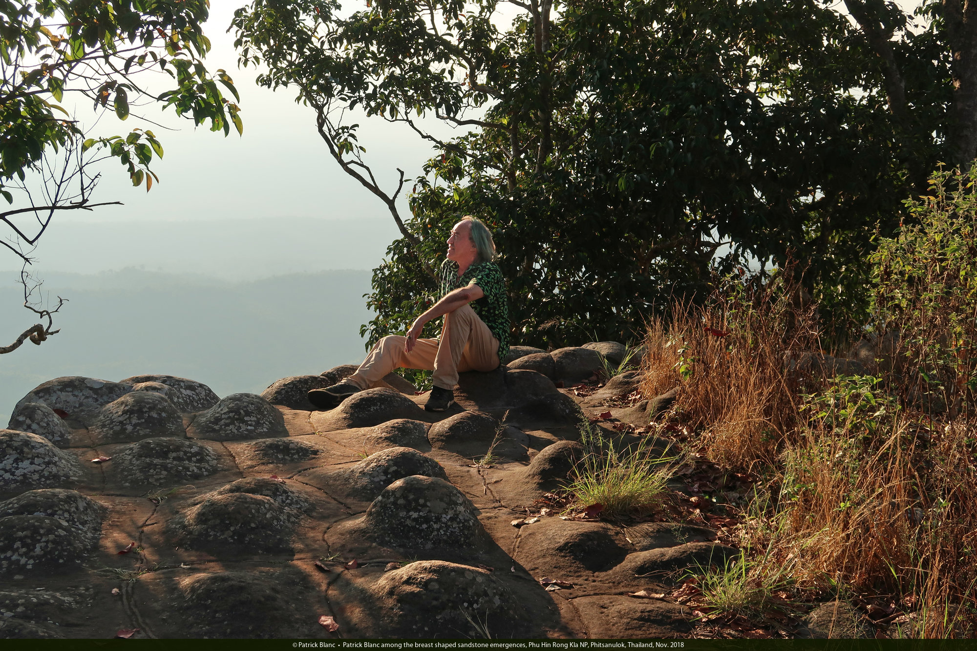 Patrick Blanc among the breast shaped sandstone emergences, Phu Hin Rong Kla NP, Phitsanulok, Thailand, Nov. 2018