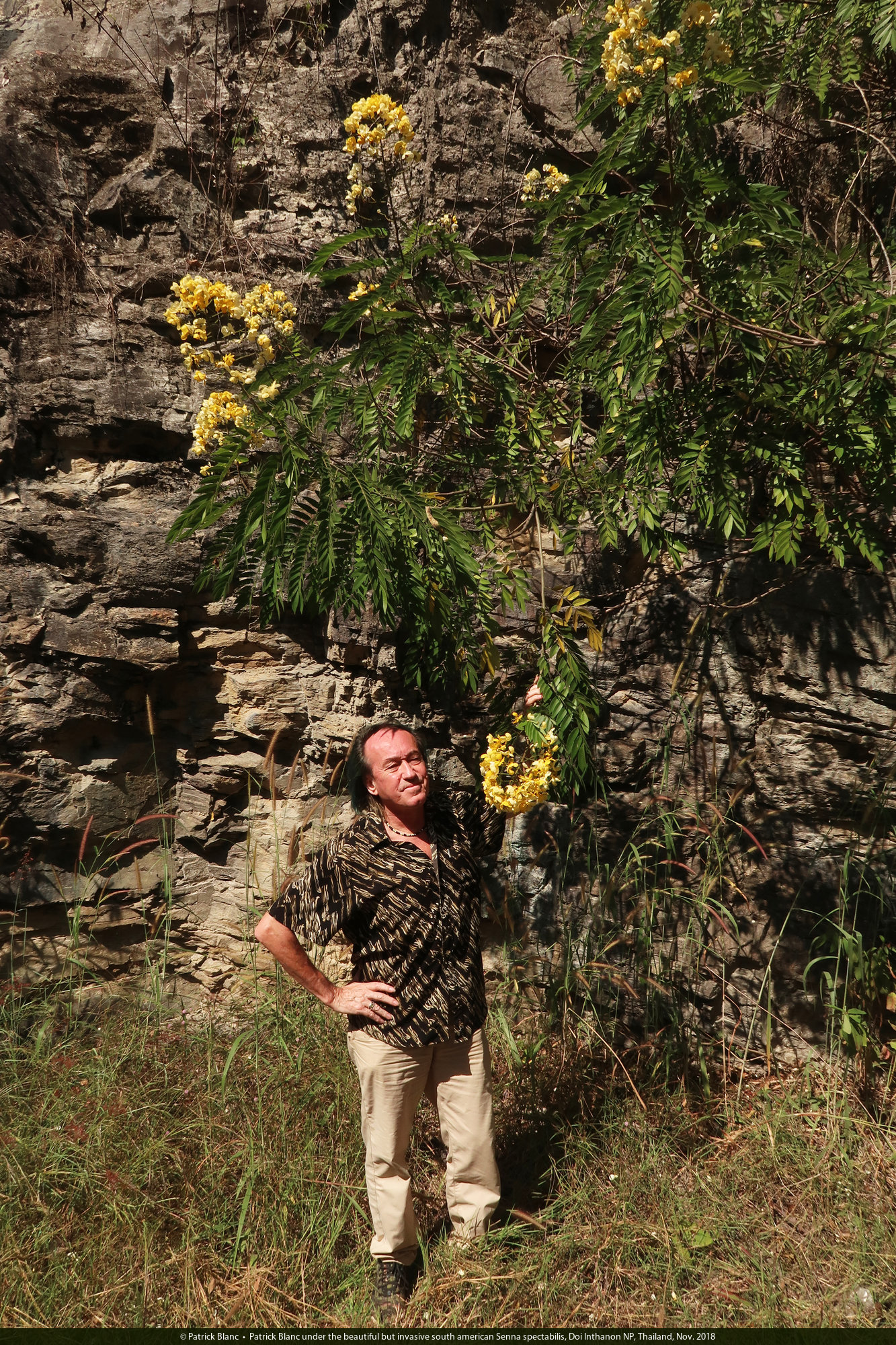 Patrick Blanc under the beautiful but invasive south american Senna spectabilis, Doi Inthanon NP, Thailand, Nov. 2018