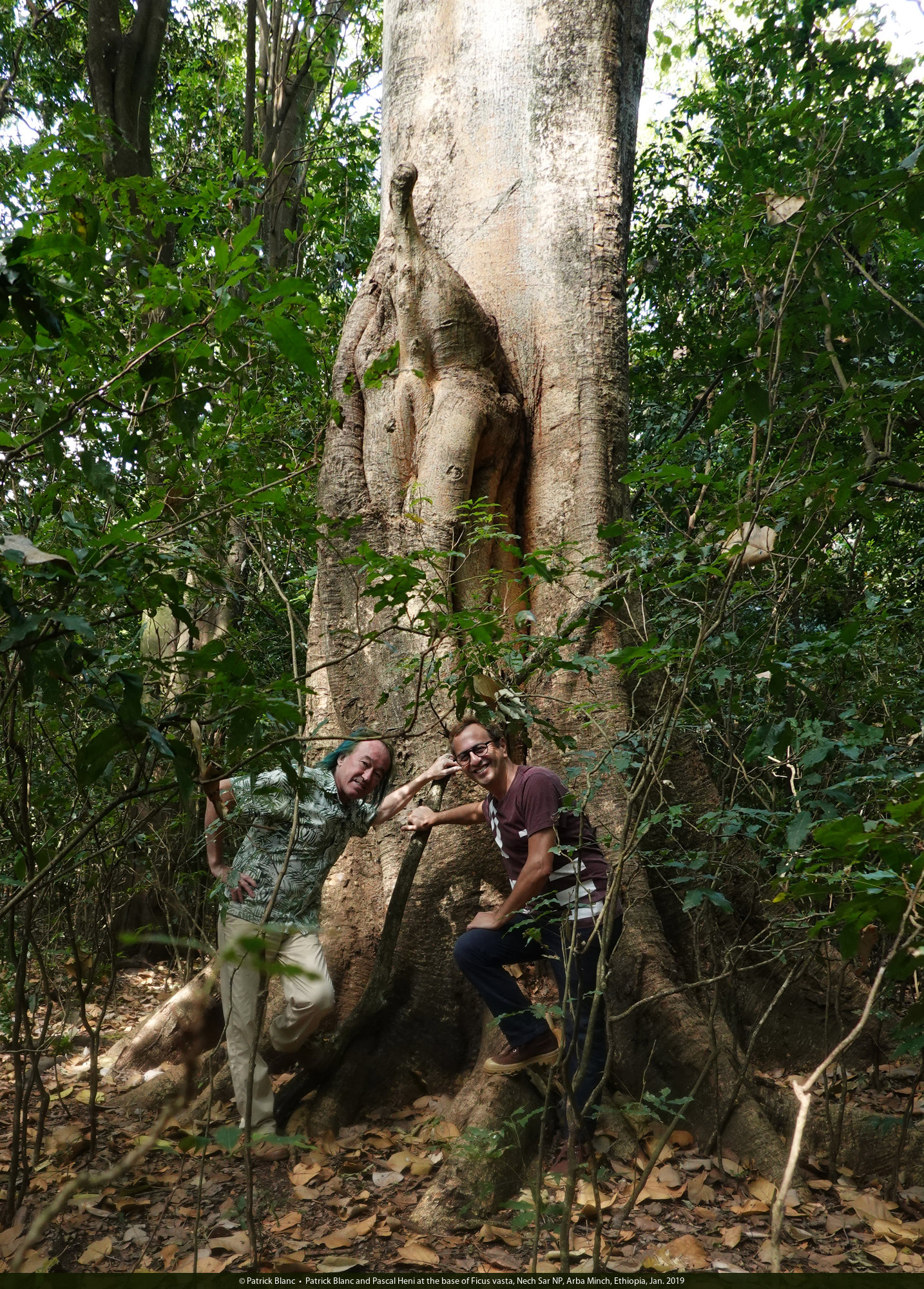 Patrick Blanc and Pascal Heni at the base of Ficus vasta, Nech Sar NP, Arba Minch, Ethiopia, Jan. 2019