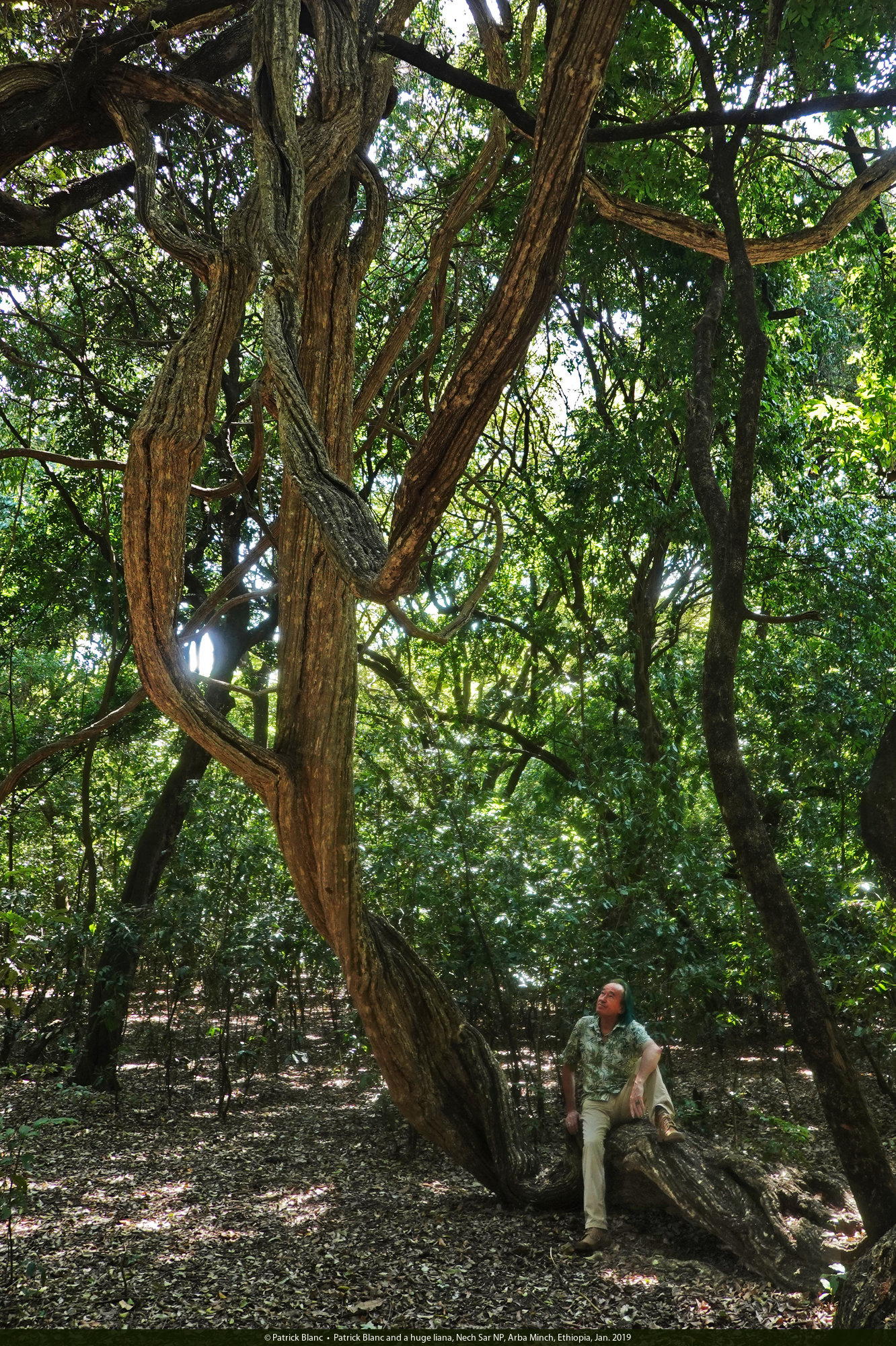 Patrick Blanc and a huge liana, Nech Sar NP, Arba Minch, Ethiopia, Jan. 2019
