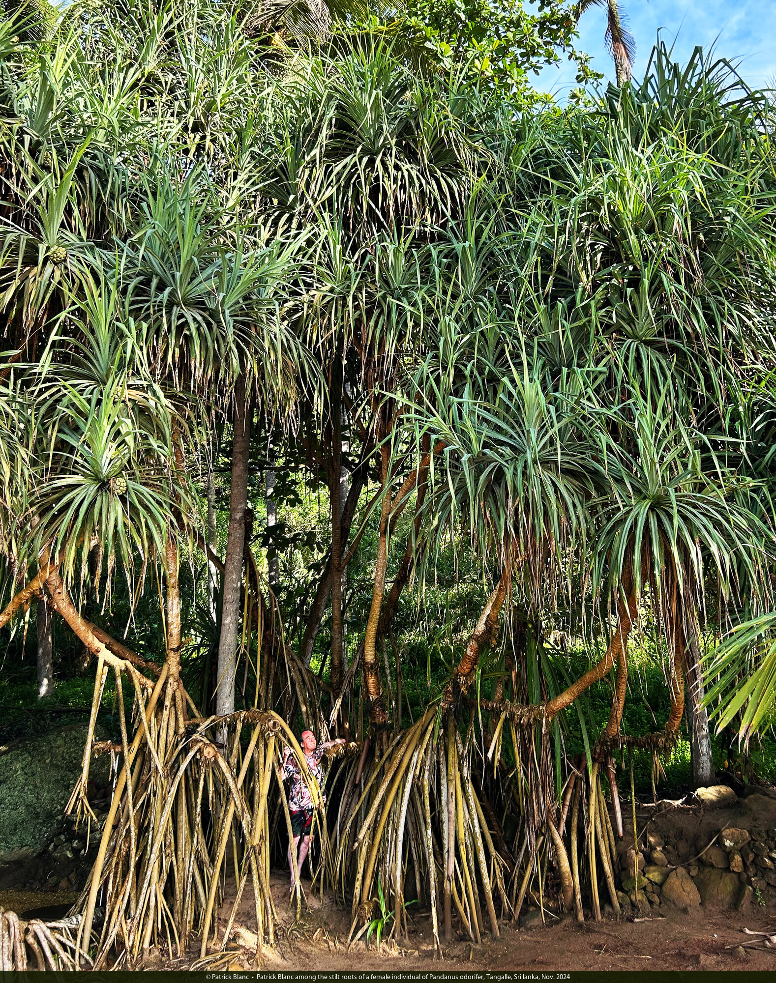 Patrick Blanc among the stilt roots of a female individual of Pandanus odorifer, Tangalle, Sri lanka, Nov. 2024