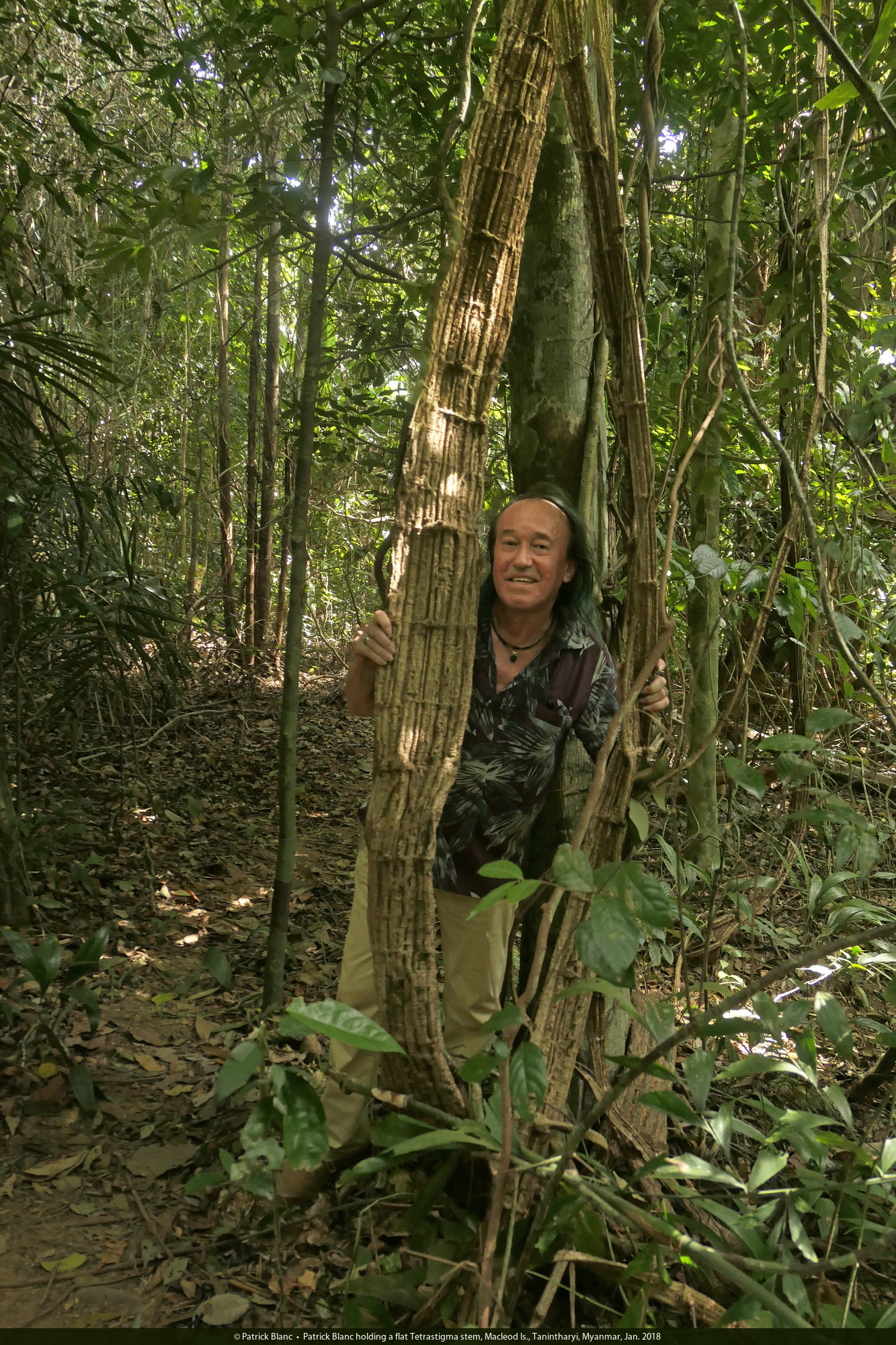 Patrick Blanc holding a flat Tetrastigma stem, Macleod Is., Tanintharyi, Myanmar, Jan. 2018