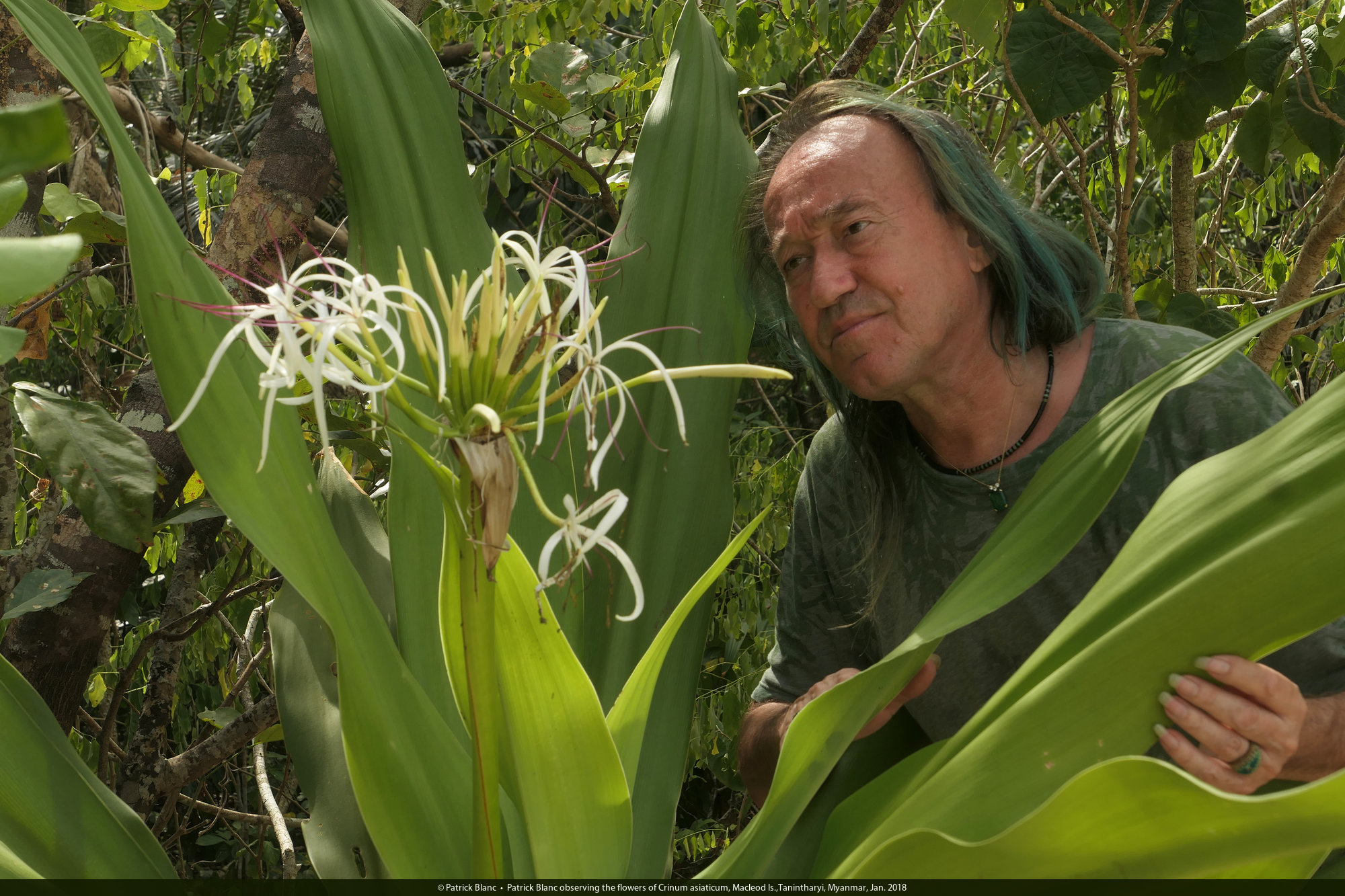 Patrick Blanc observing the flowers of Crinum asiaticum, Macleod Is.,Tanintharyi, Myanmar, Jan. 2018