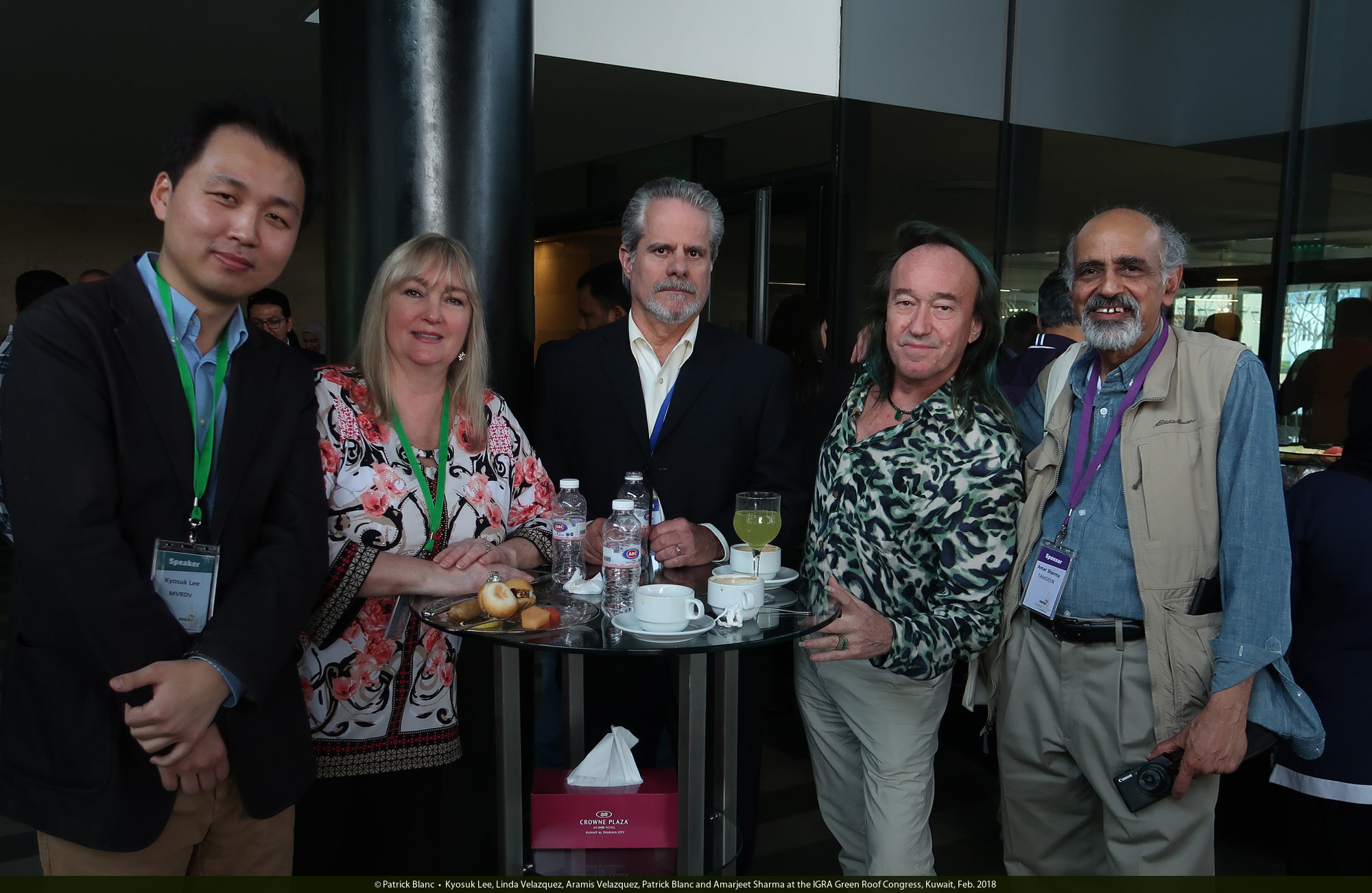 Kyosuk Lee, Linda Velazquez, Aramis Velazquez, Patrick Blanc and Amarjeet Sharma at the IGRA Green Roof Congress, Kuwait, Feb. 2018