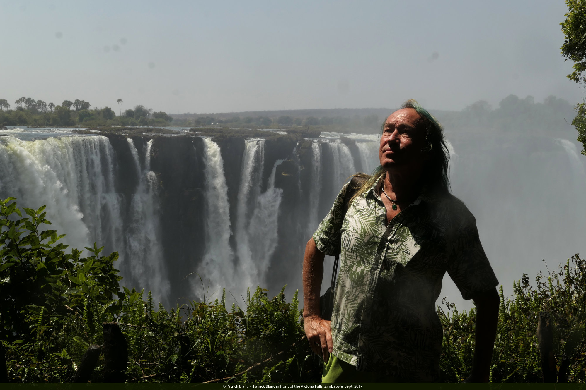 Patrick Blanc in front of the Victoria Falls, Zimbabwe, Sept. 2017