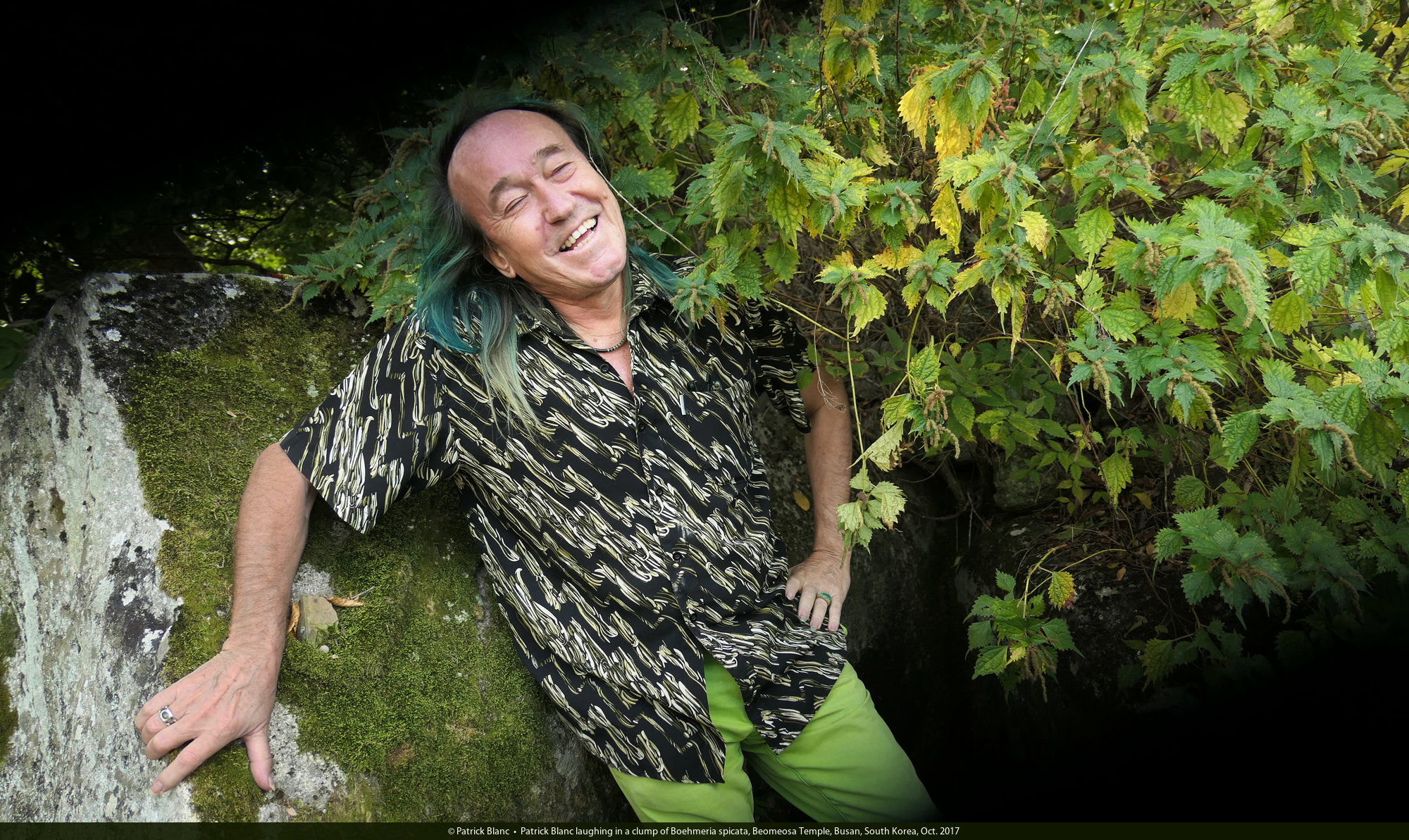 Patrick Blanc laughing in a clump of Boehmeria spicata, Beomeosa Temple, Busan, South Korea, Oct. 2017
