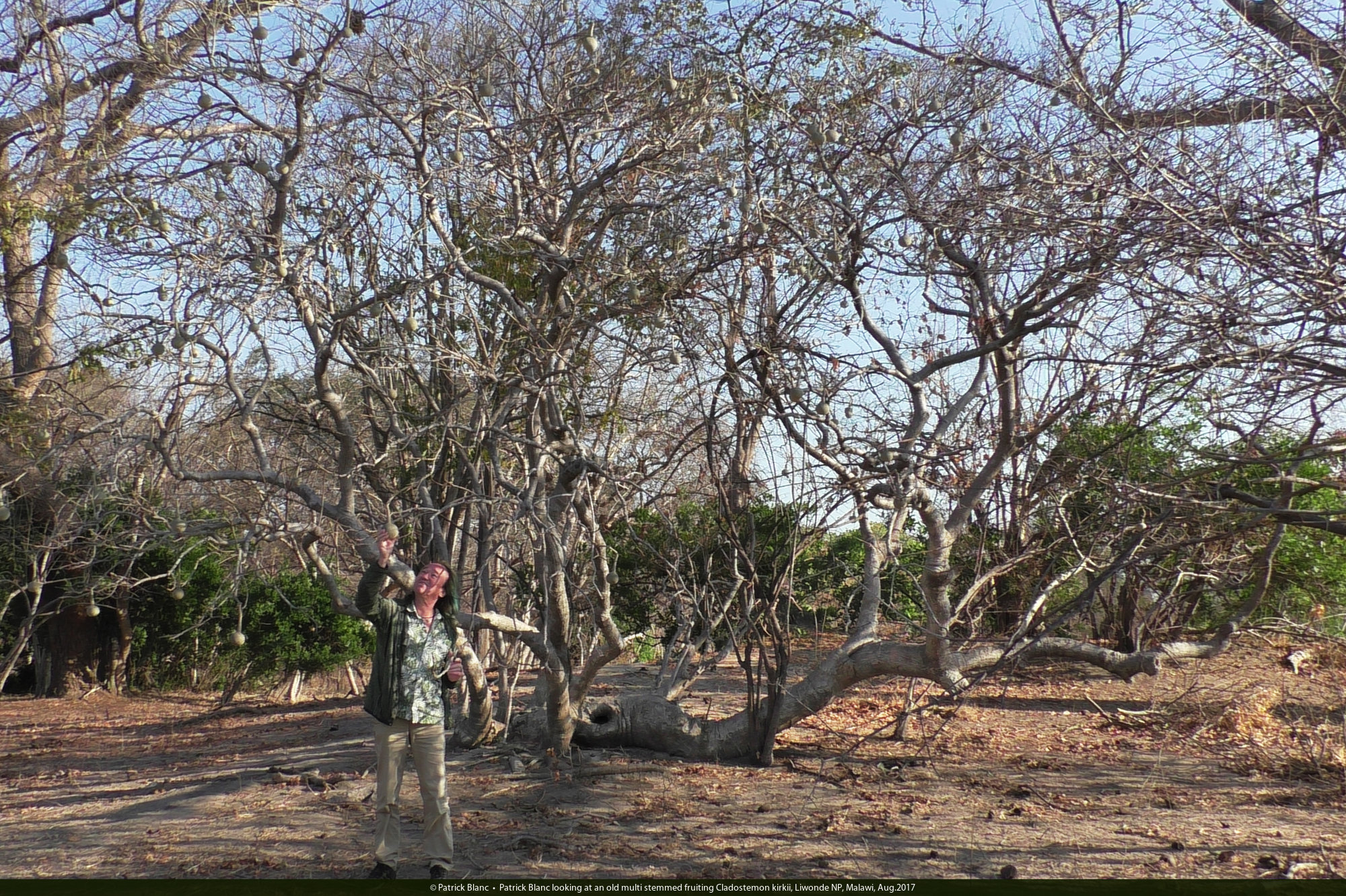 Patrick Blanc and Cladostemon kirkii hanging fruits, Liwonde NP, Malawi, Aug. 2017