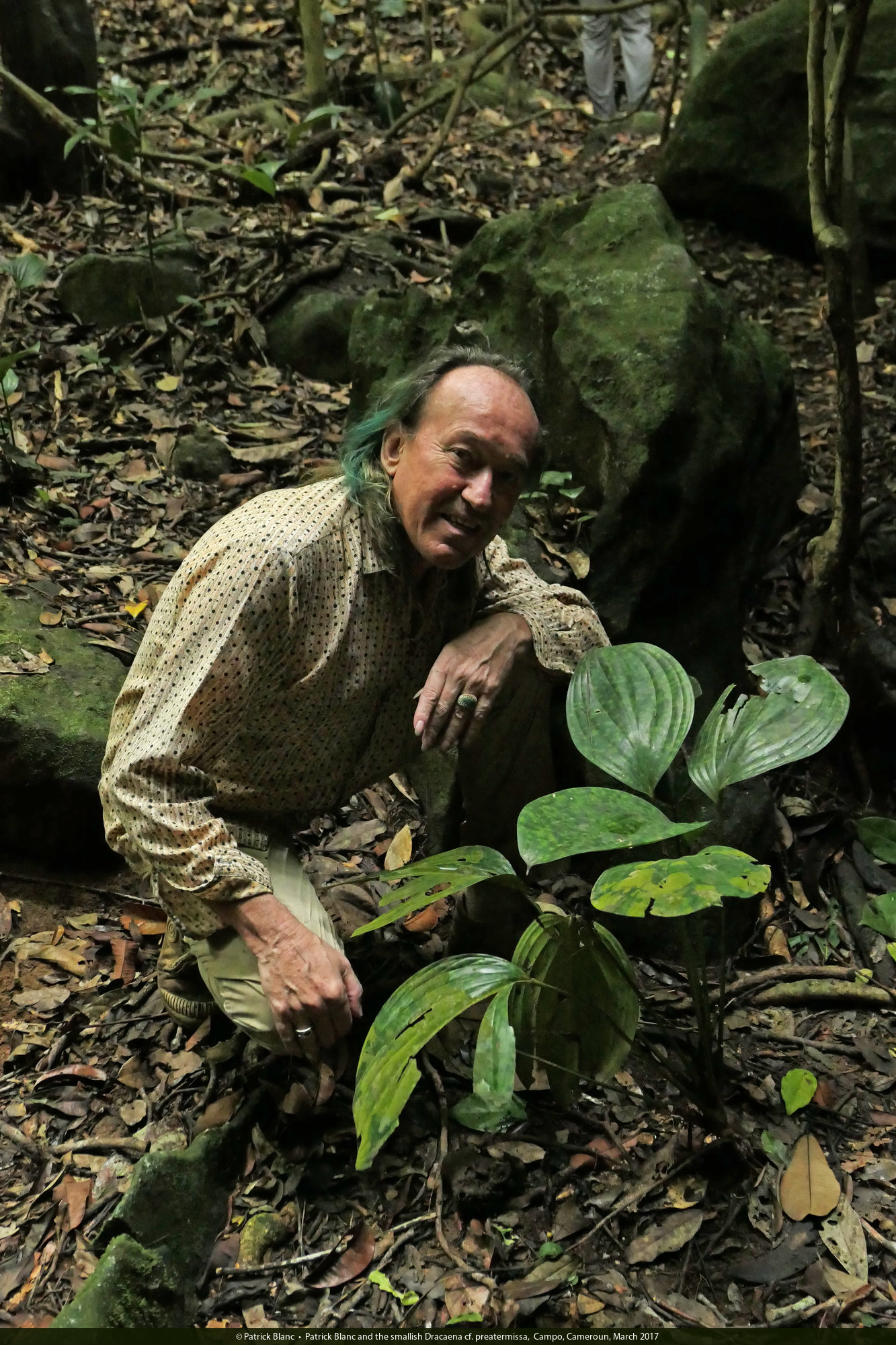 Patrick Blanc and the smallish Dracaena phrynioides, Campo, Cameroun, March 2017