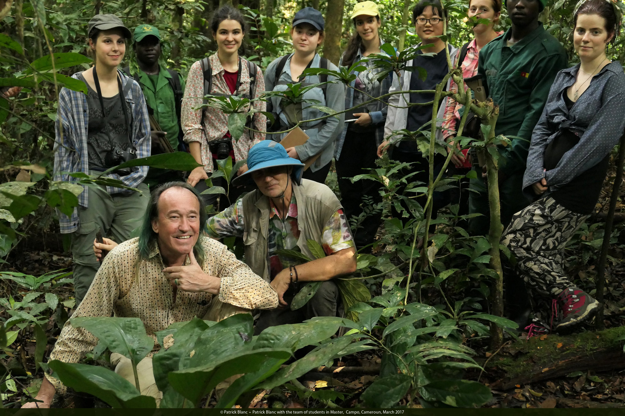 Patrick Blanc with the team of students in Master, Campo, Cameroun, March 2017