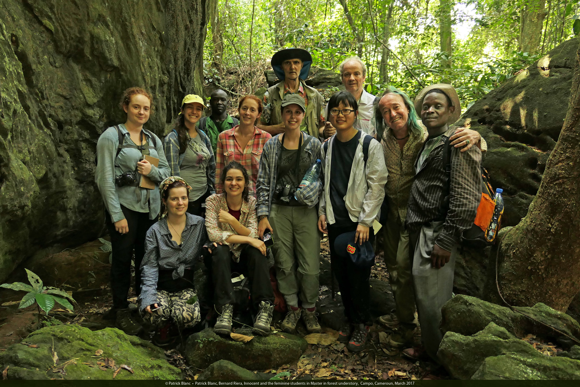 Patrick Blanc, Bernard Riera, Innocent and the feminine students in Master in forest understory, Campo, Cameroun, March 2017