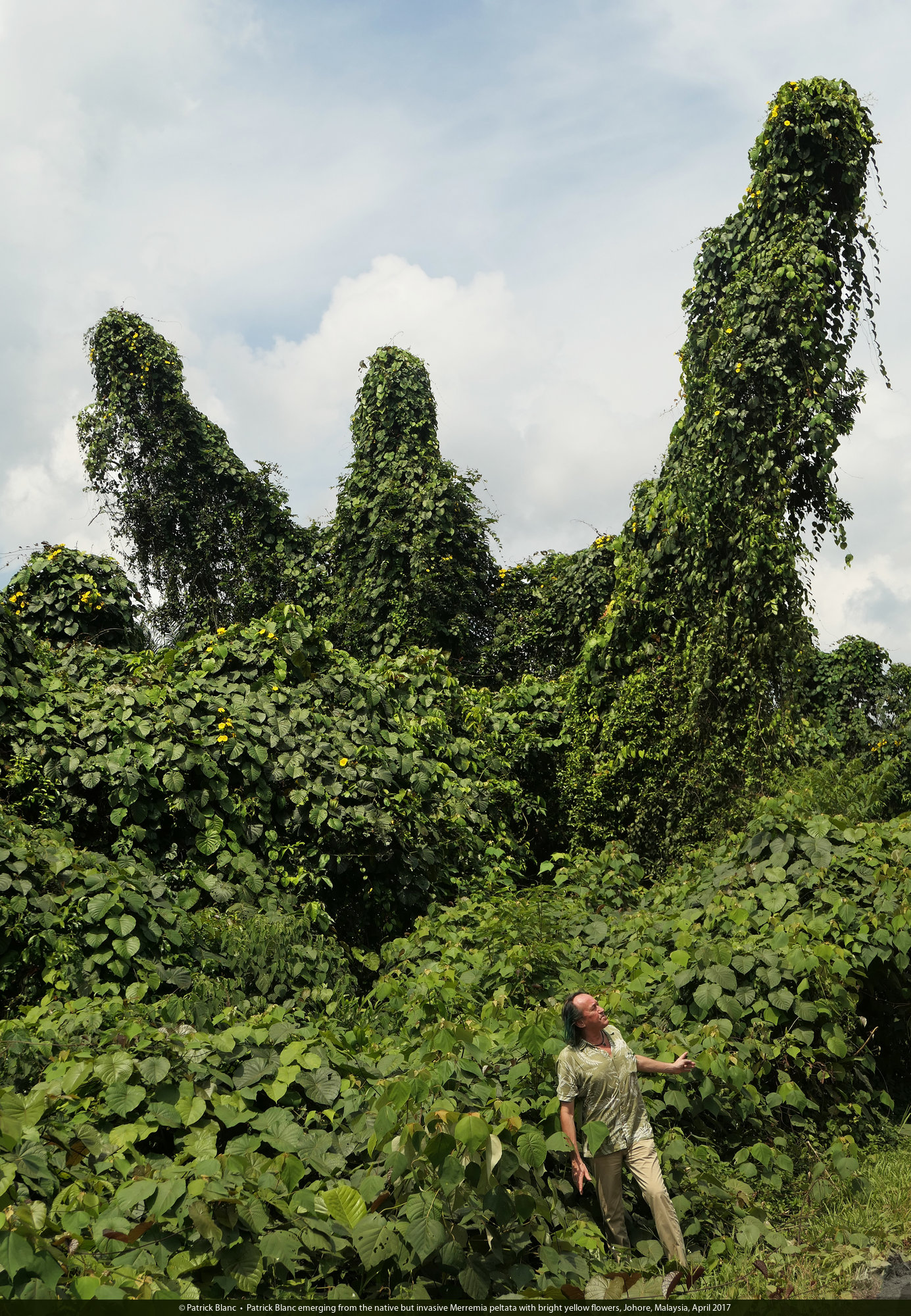 Patrick Blanc emerging from the native but invasive Merremia peltata, Johore, Malaysia, April 2017