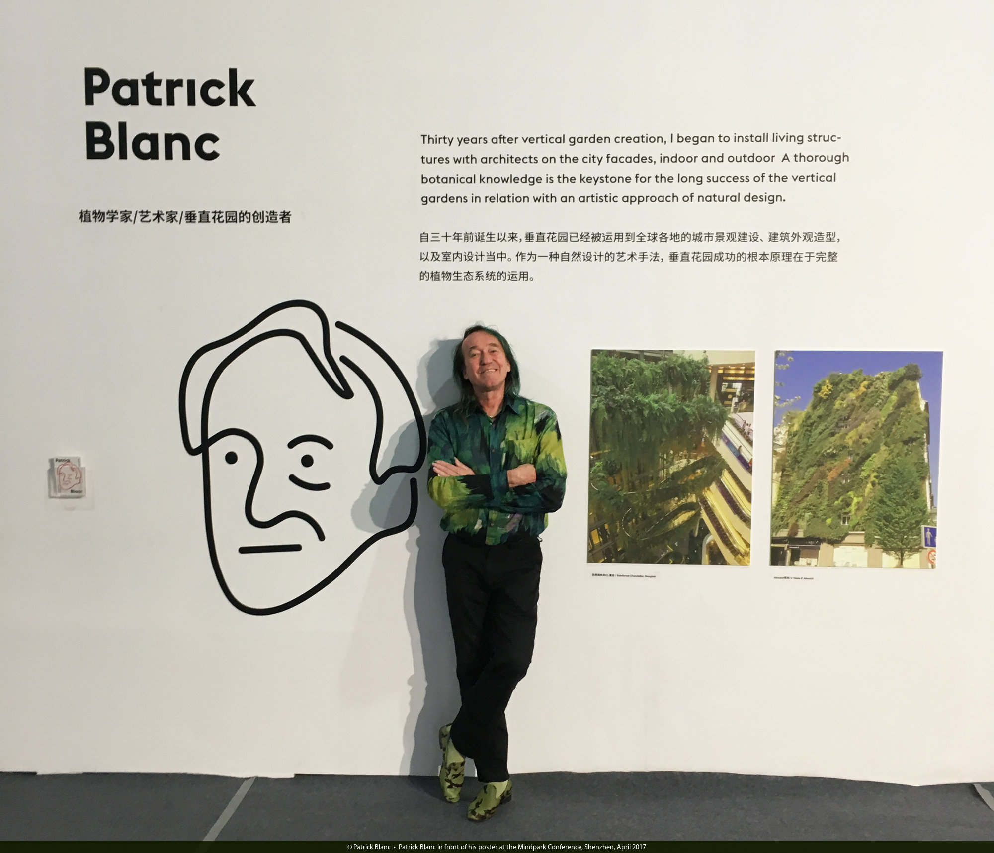 Patrick Blanc in front of his poster at the Mindpark Conference, Shenzhen, April 2017