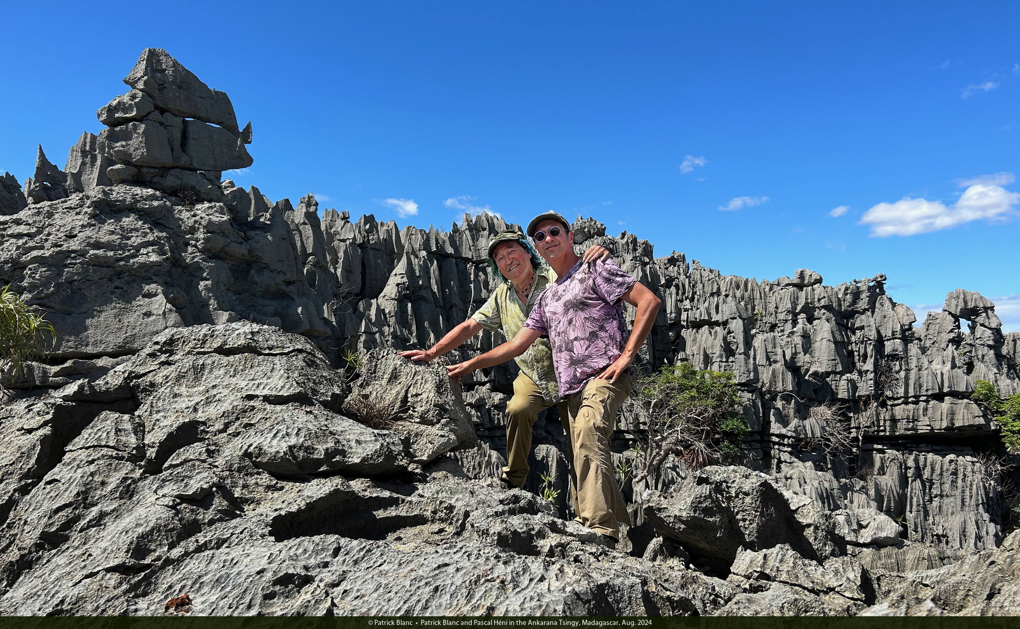 Patrick Blanc and Pascal Héni in the Ankarana Tsingy, Madagascar, Aug. 2024