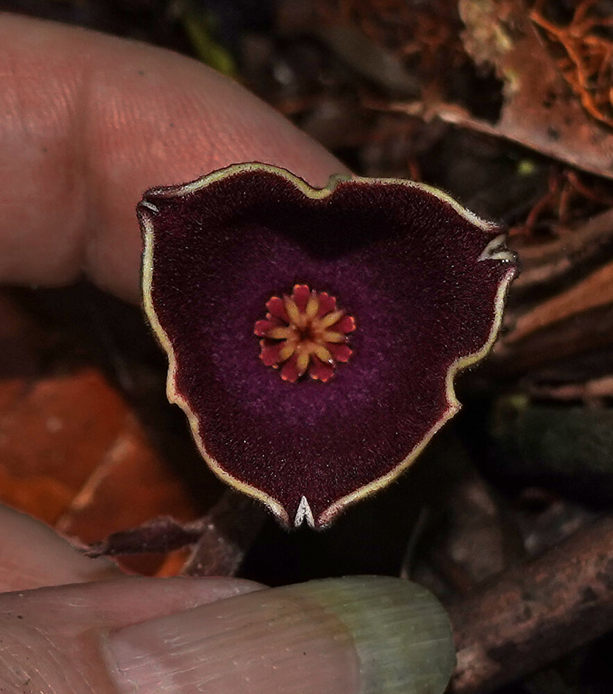 Patrick Blanc showing the horned receptacle of the Elatostema strigosum inflorescence, Manusela NP, 800 m asl, Seram, Moluccas