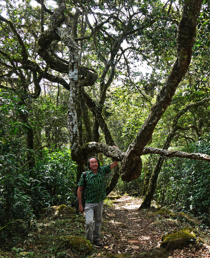 Patrick Blanc observing the hanging infructescence of Pleuranthodium cf. racemigerum, Manusela NP, 800 m asl, Seram, Moluccas, April 2024