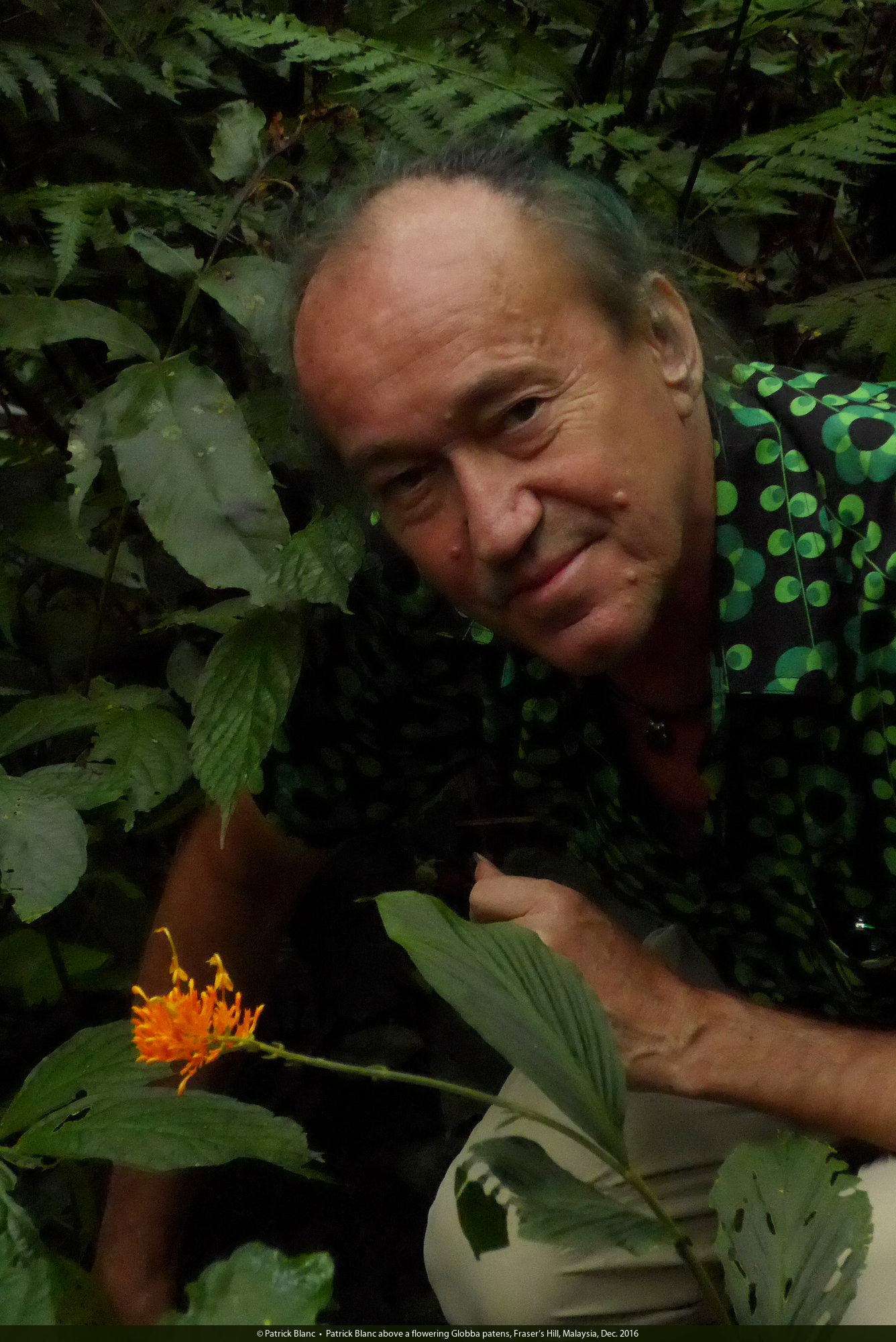 Patrick Blanc above a flowering Globba patens, Fraser's Hill, Malaysia, Dec. 2016