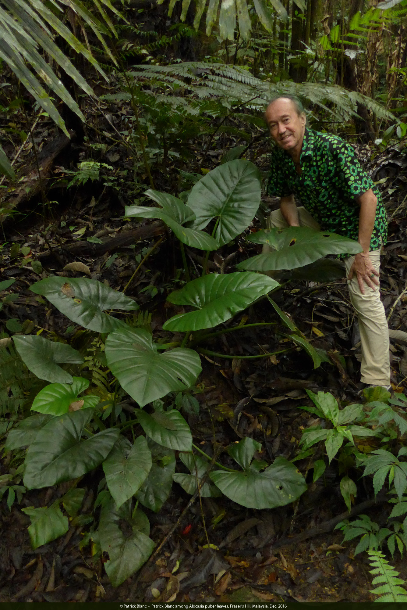 Patrick Blanc among Alocasia inornata leaves, Fraser's Hill, Malaysia, Dec. 2016