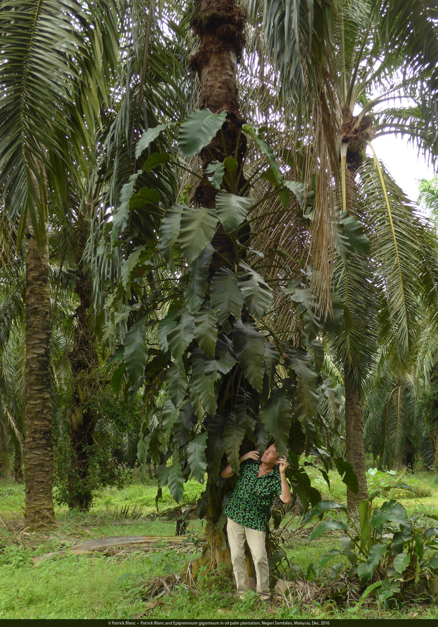 Patrick Blanc and Epipremnum giganteum in oil palm plantation, Negeri Sembilan, Malaysia, Dec. 2016
