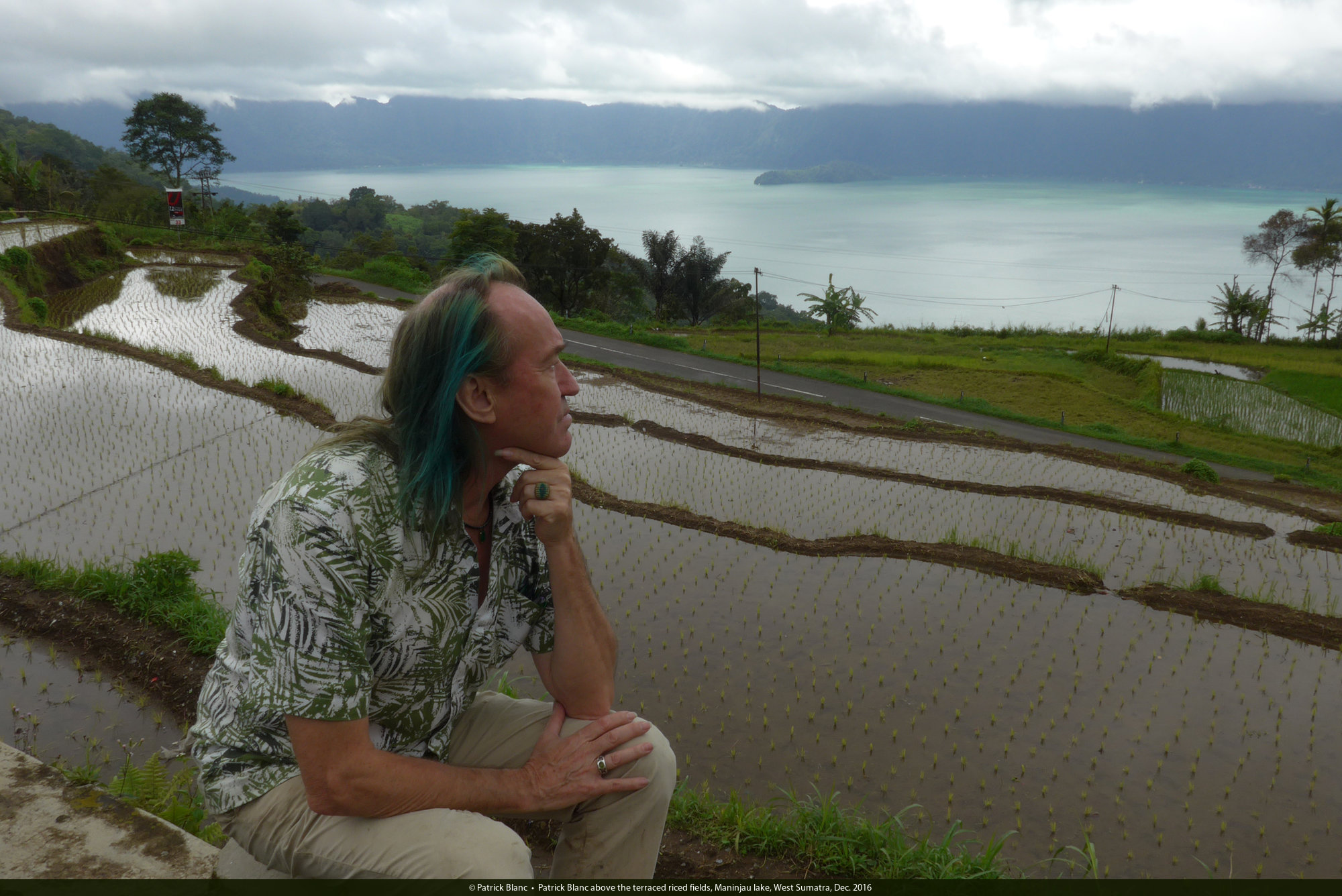 Patrick Blanc above the terraced riced fields, Maninjau lake, West Sumatra, Dec. 2016