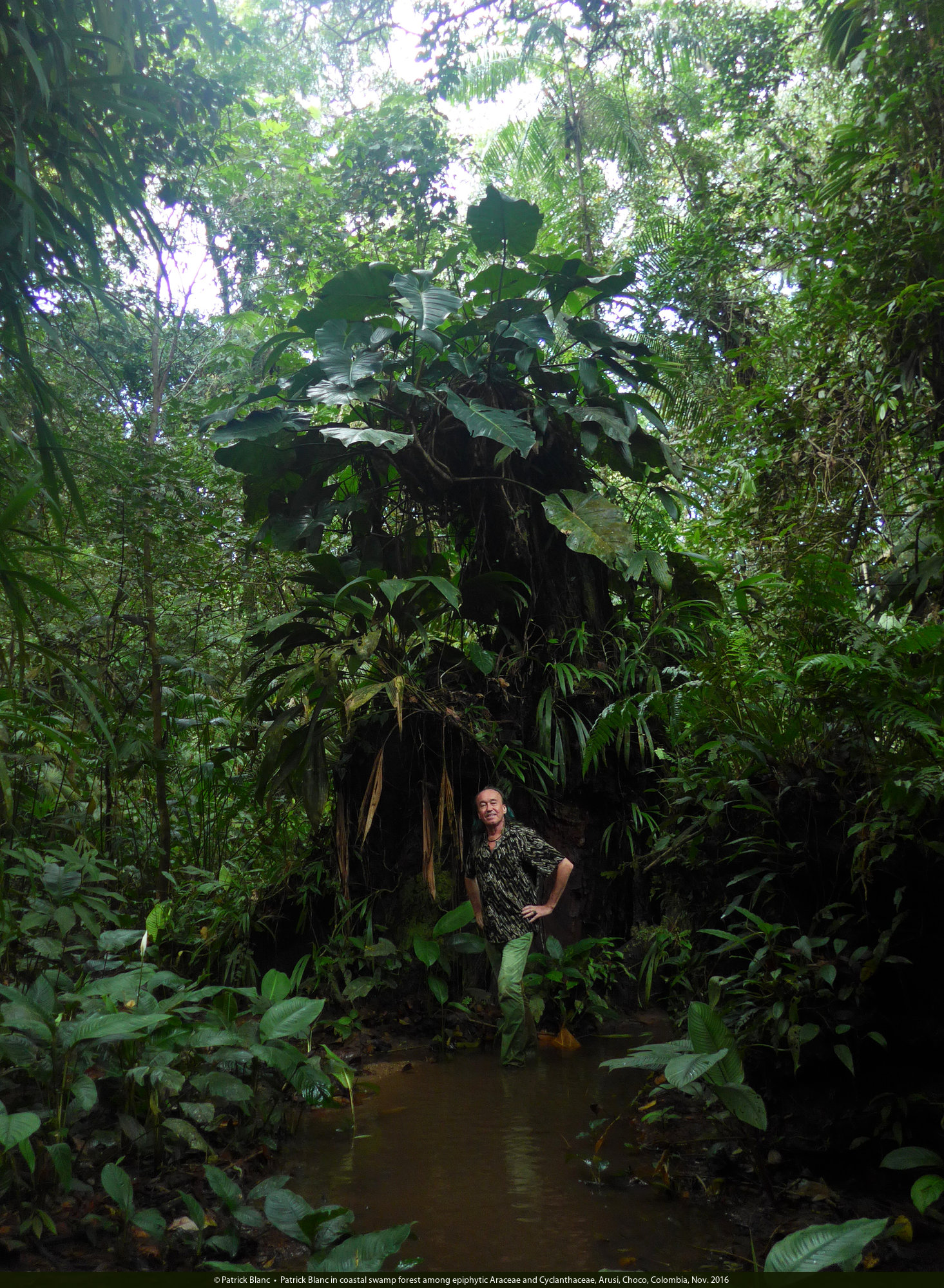 Patrick Blanc in coastal fresh swamp forest, Arusi, Nuqui, Choco, Colombia, Nov. 2016