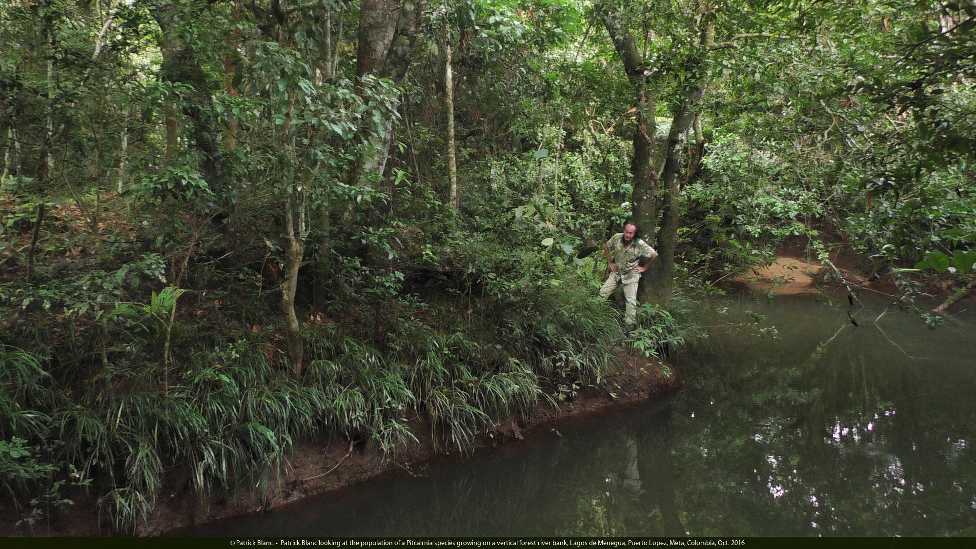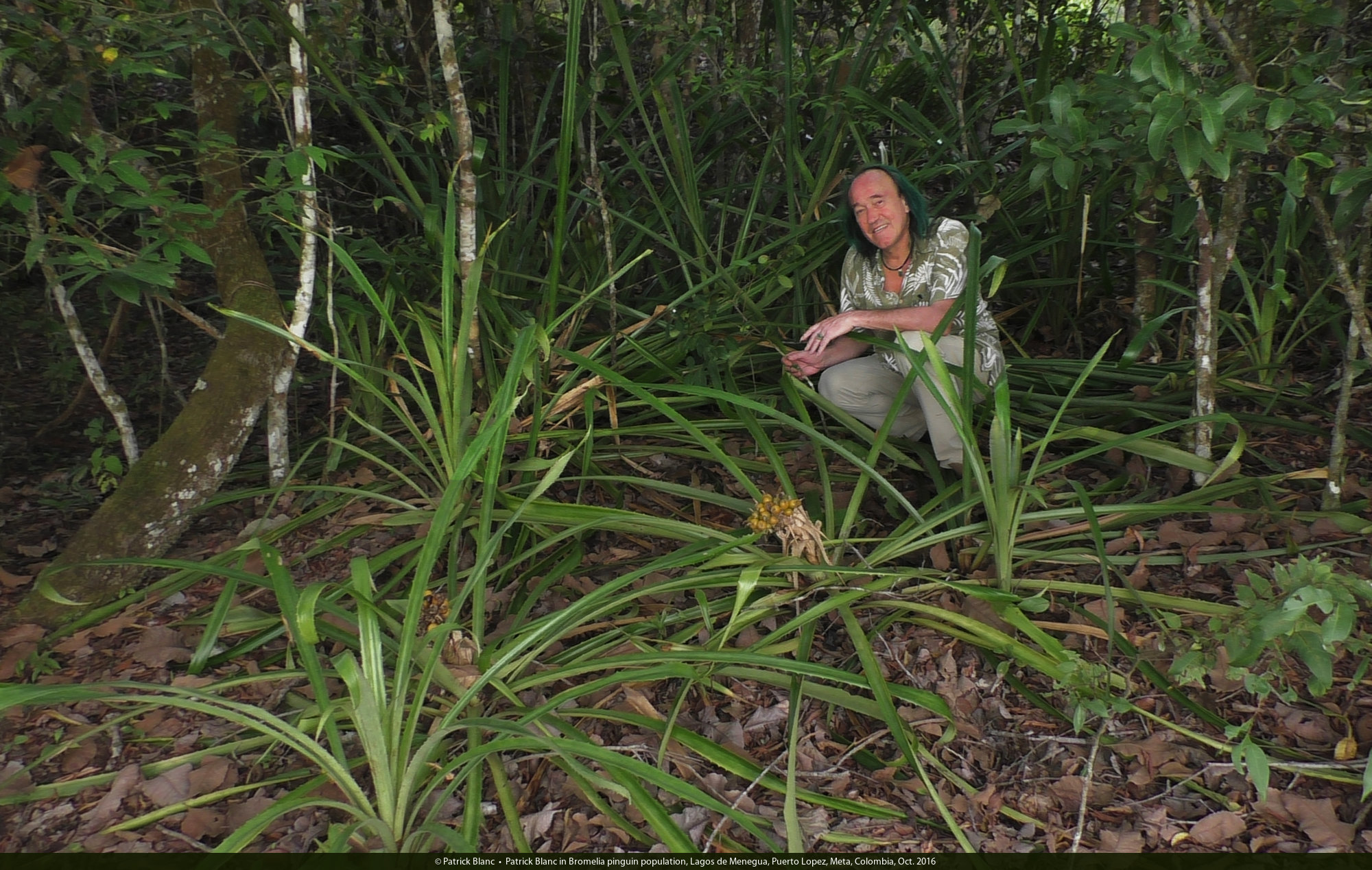 Patrick Blanc in Bromelia pinguin population, Lagos de Menegua, Puerto Lopez, Meta, Colombia, Oct. 2016