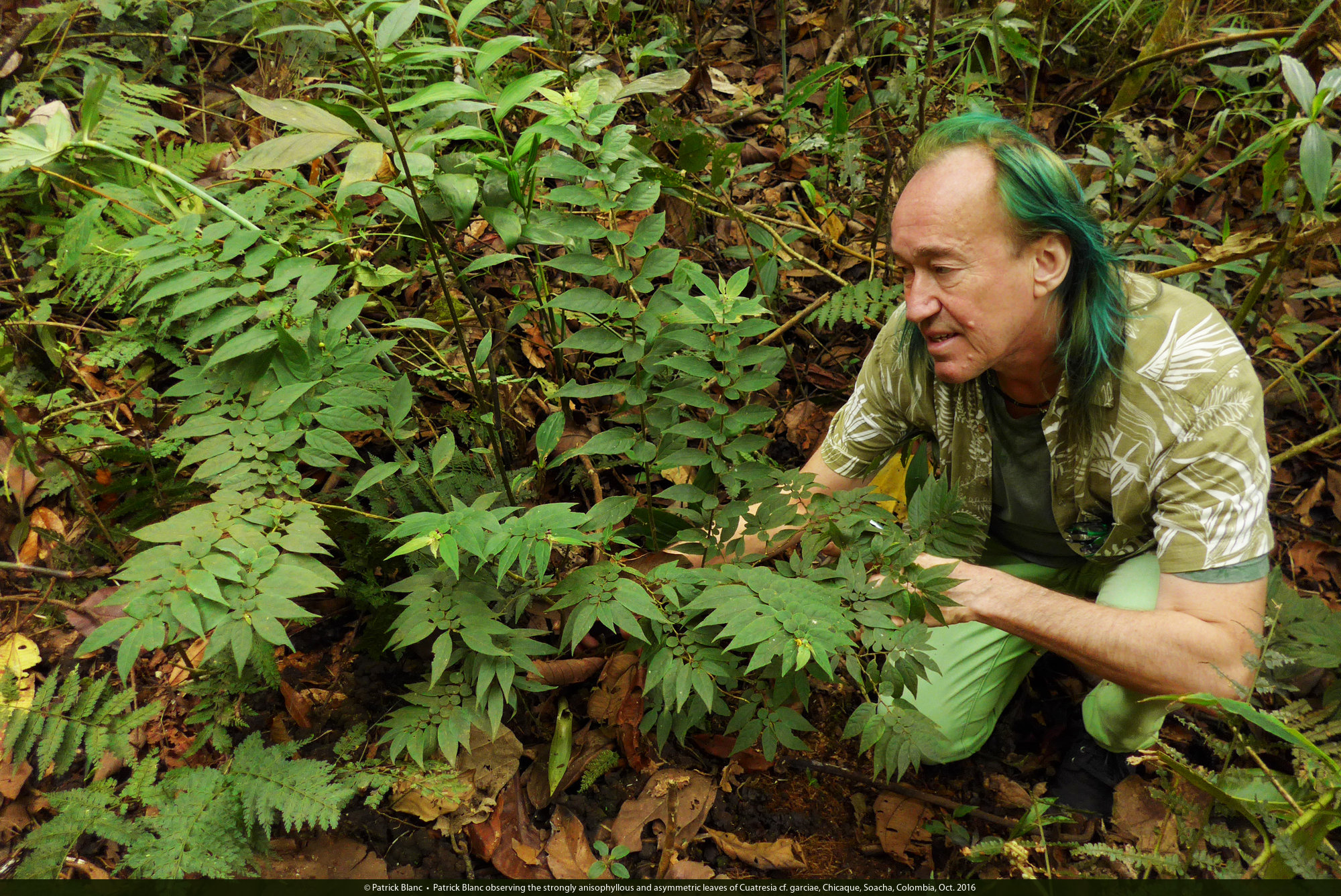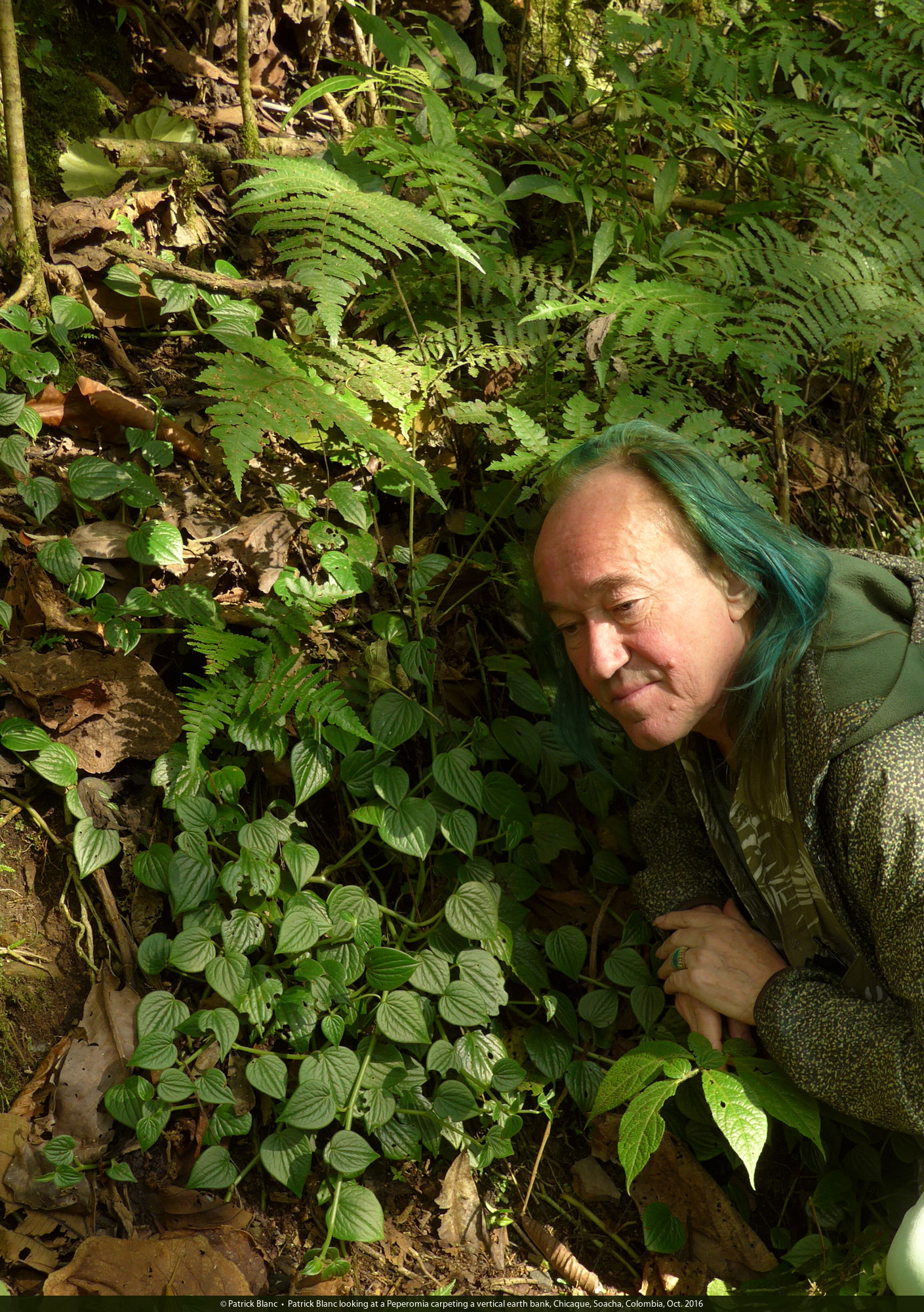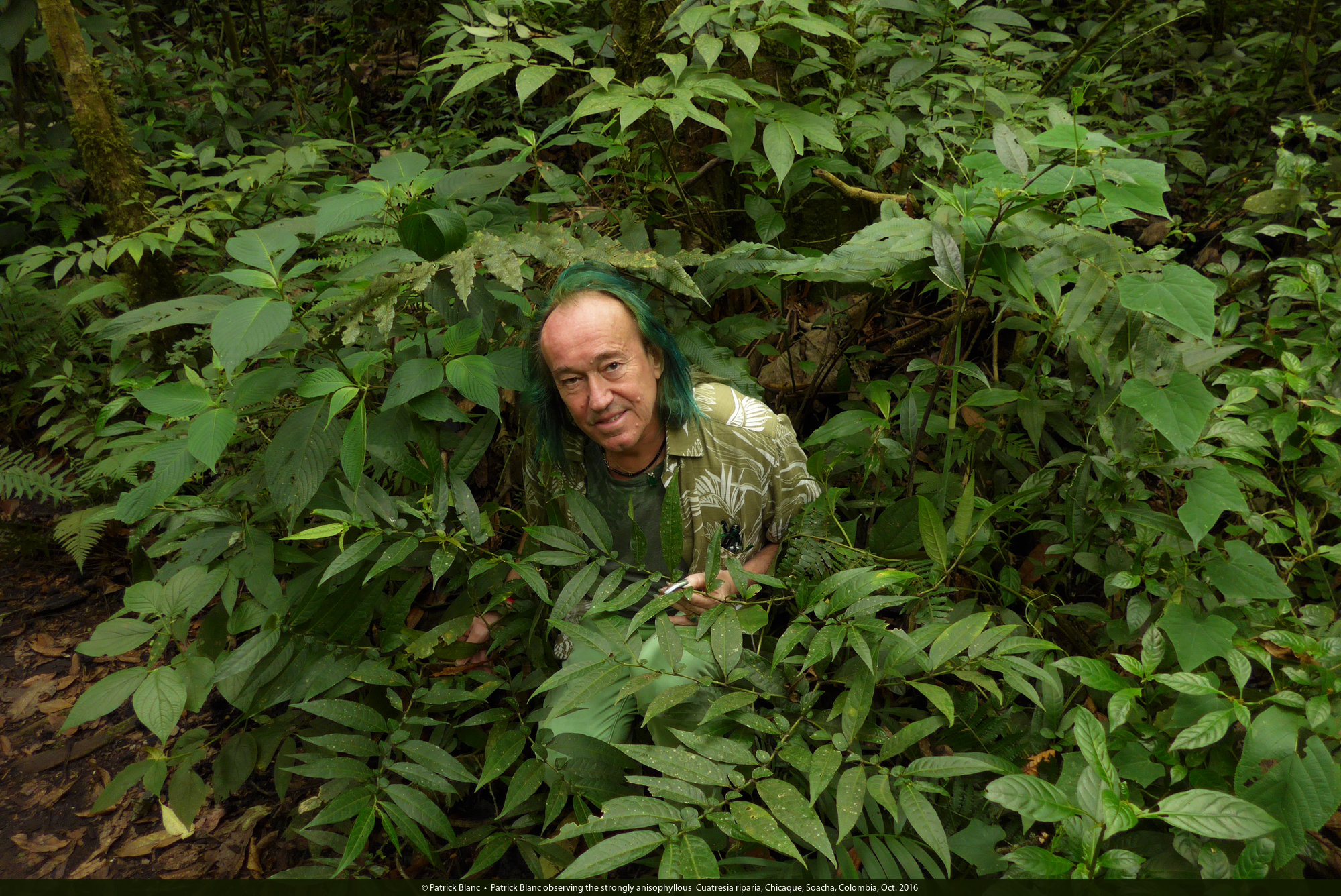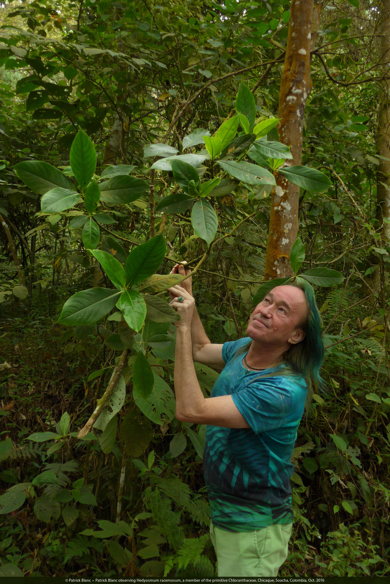 Patrick Blanc observing Hedyosmum racemosum, a member of the primitive Chloranthaceae, Chicaque, Soacha, Colombia, Oct. 2016