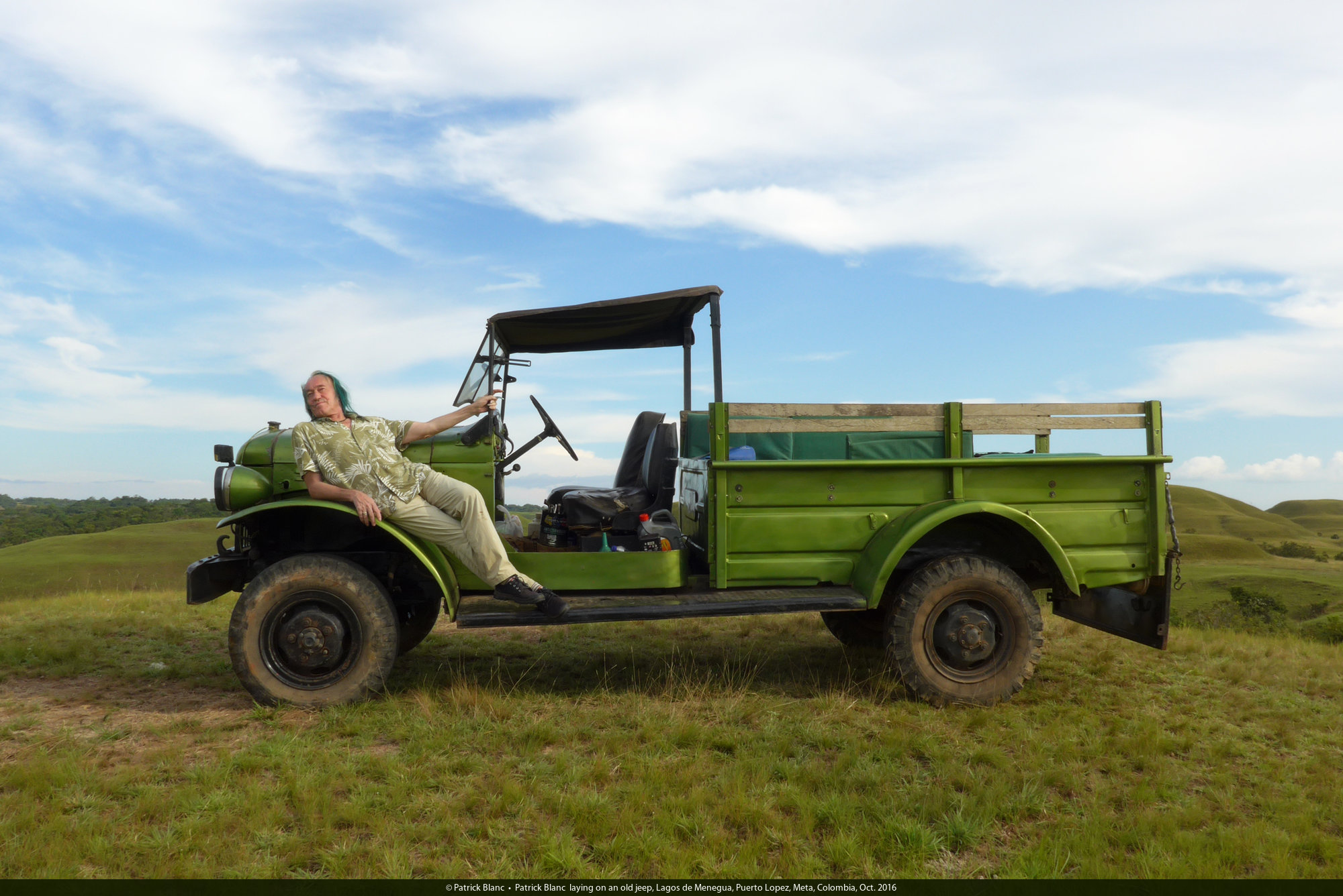 Patrick Blanc laying on an old jeep, Lagos de Menegua, Puerto Lopez, Meta, Colombia, Oct. 2016
