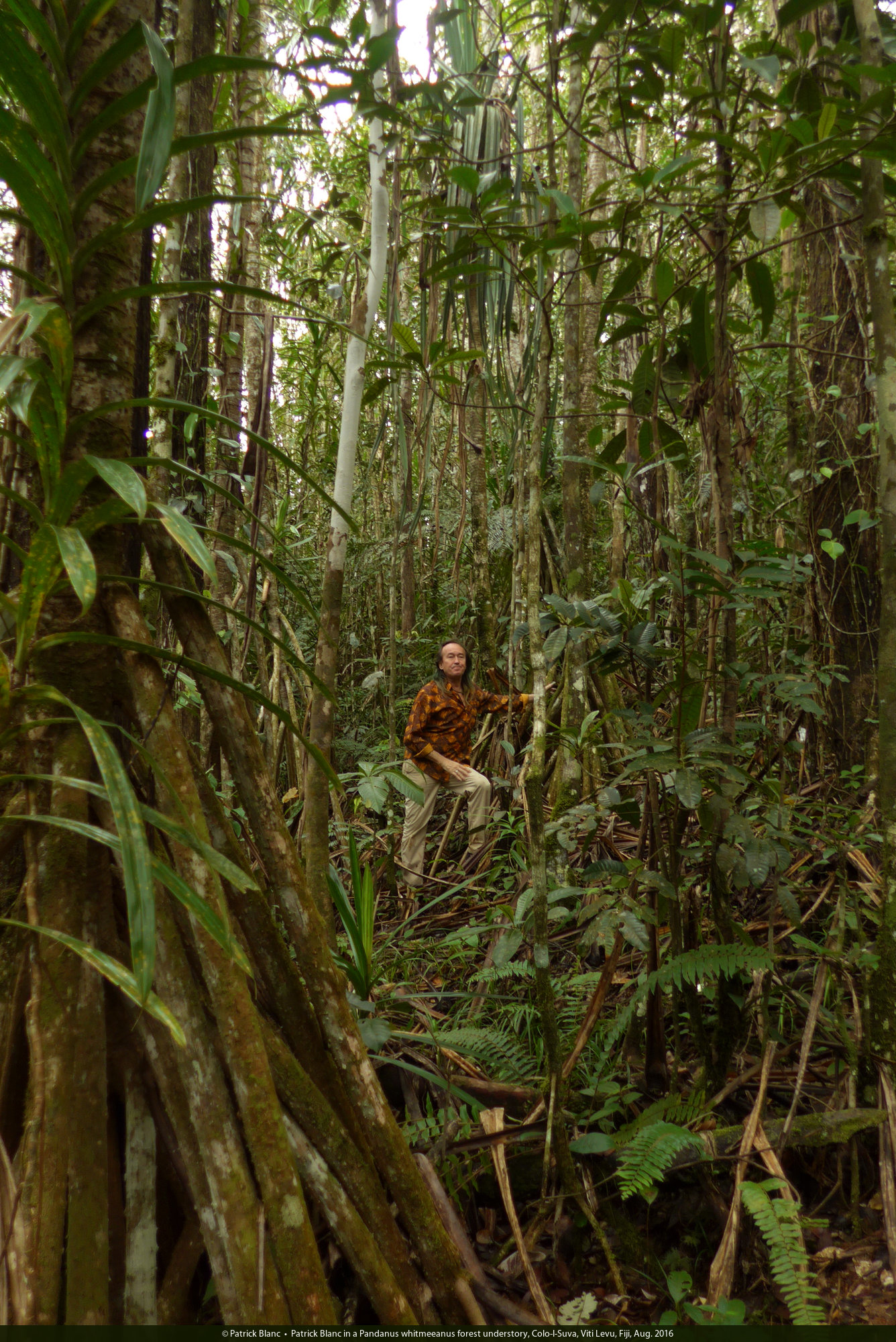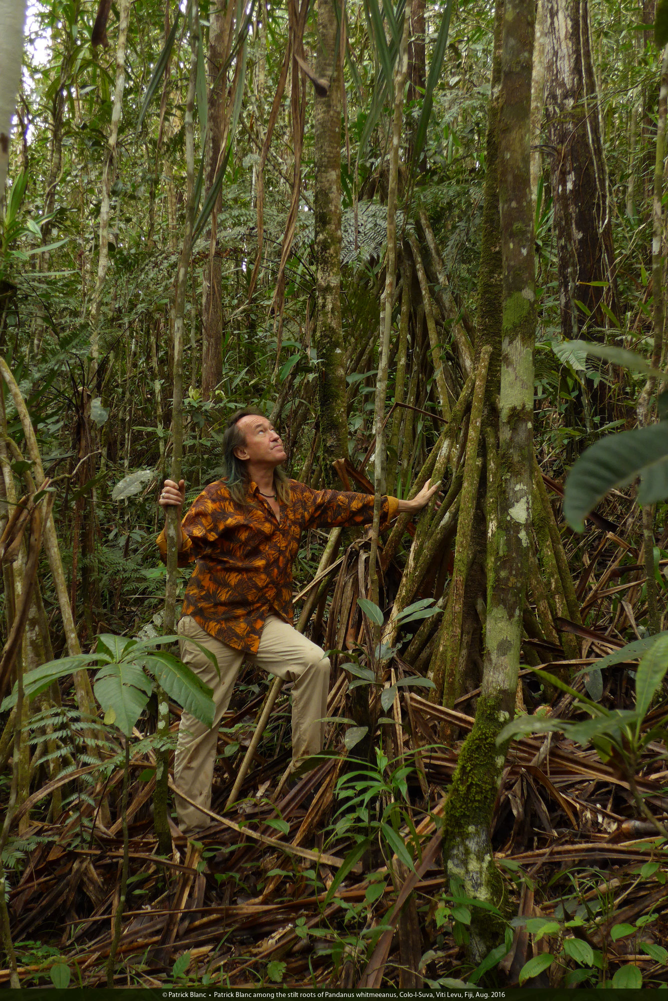 Patrick Blanc in a Pandanus whitmeeanus forest understory, Colo-I-Suva, Viti Levu, Fiji, Aug. 2016