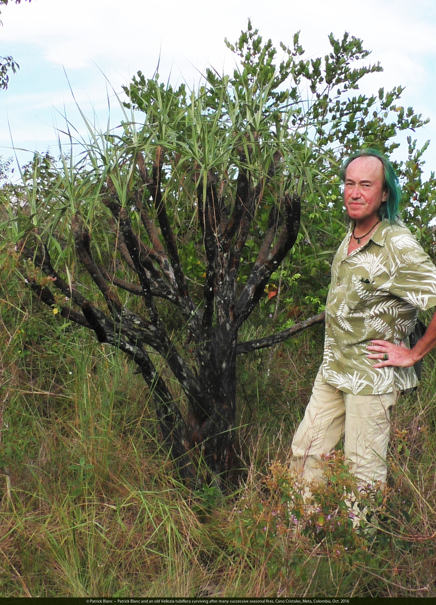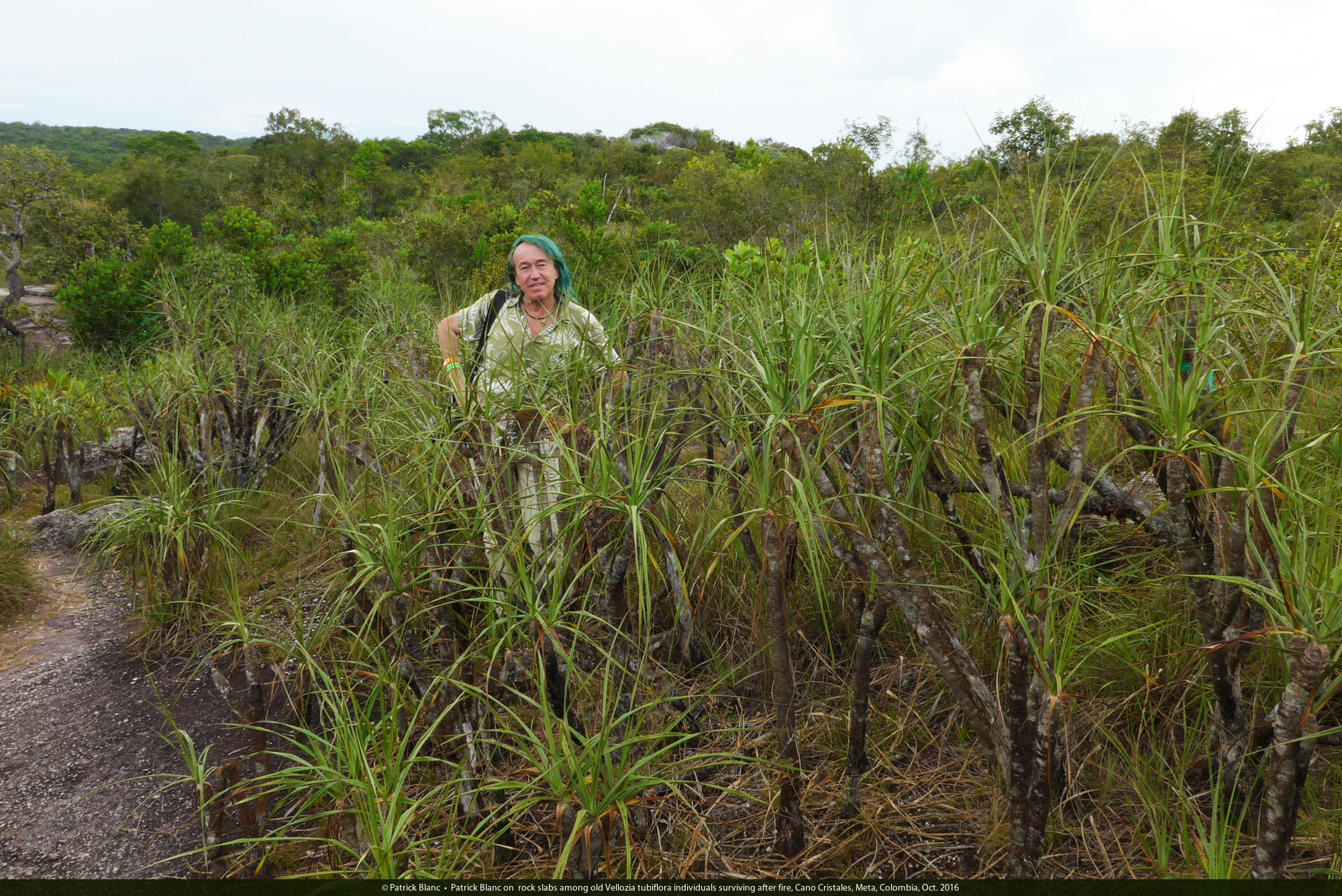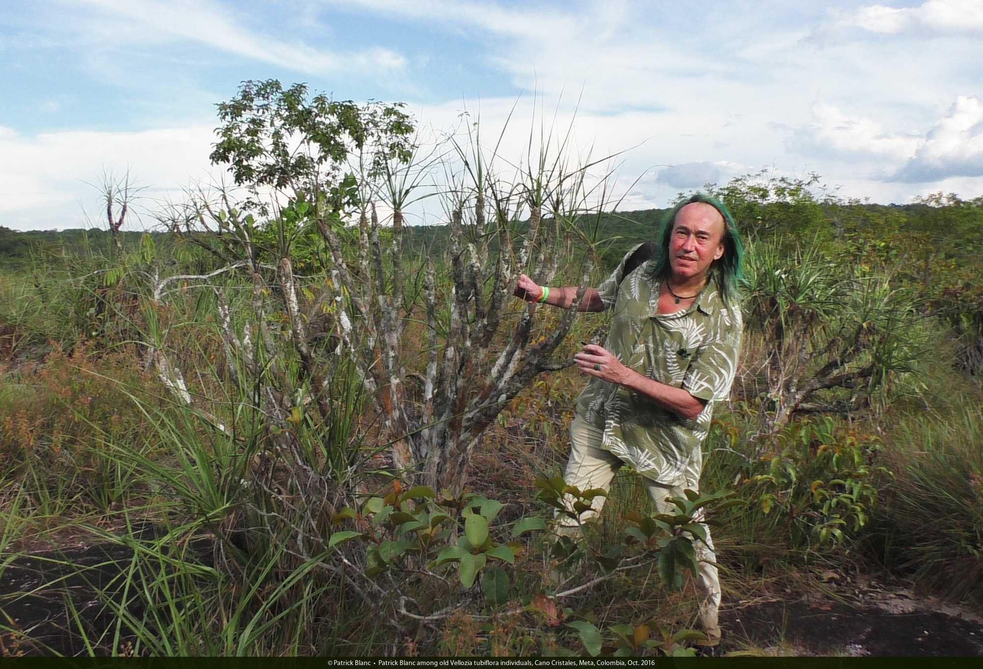 Patrick Blanc among old Vellozia tubiflora individuals, Cano Cristales, Meta, Colombia, Oct. 2016