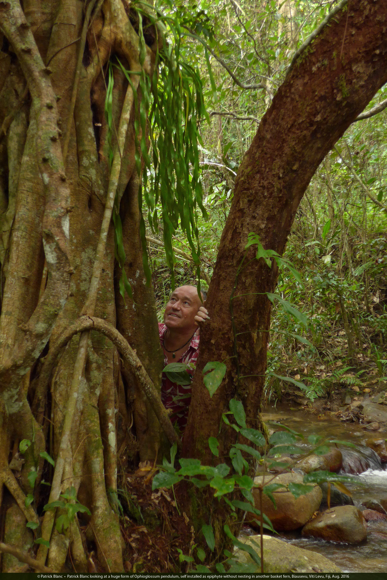 • Patrick Blanc and the monocaulous Ficus theophrastoides, Bouma Nat. Heritage Park, Taveuni, Fiji, Aug. 2016