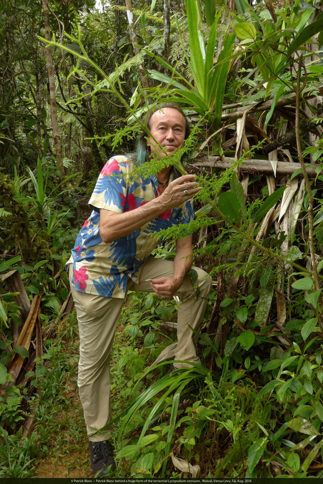Patrick Blanc behind a huge form of the terrestrial Lycopodium cernuum, Waisali, Vanua Levu, Fiji, Aug. 2016