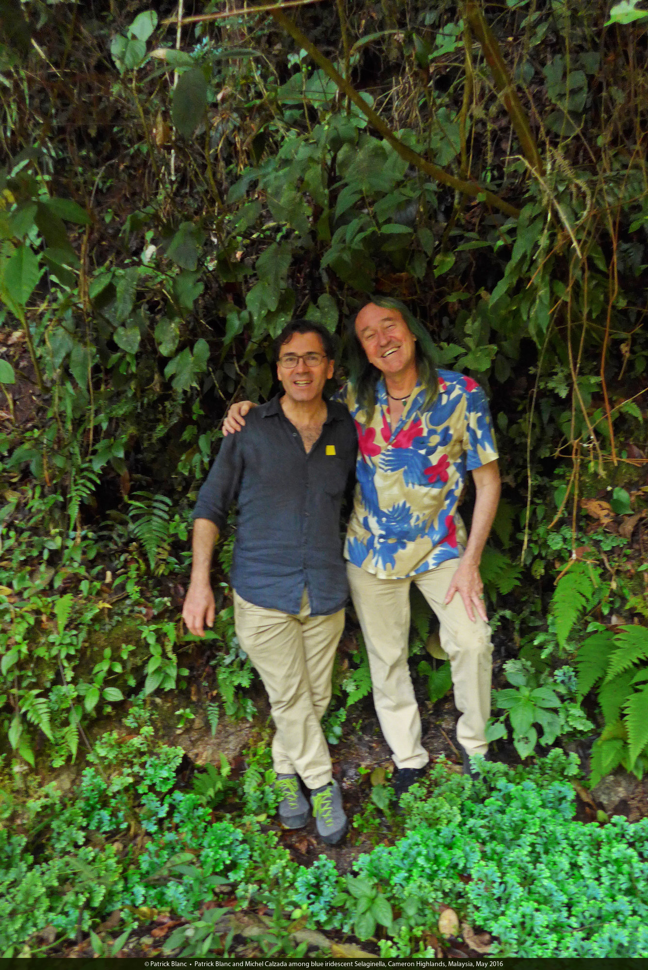Patrick Blanc and Michel Calzada among blue iridescent Selaginella, Cameron Highlands, Malaysia, May 2016