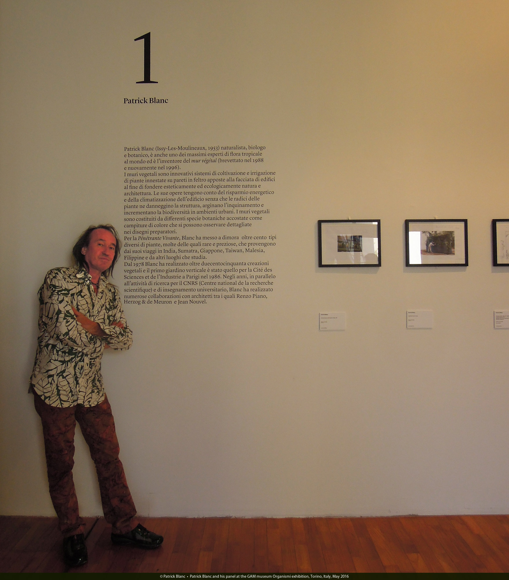 Patrick Blanc and his panel at the GAM museum Organismi exhibition, Torino, Italy, May 2016