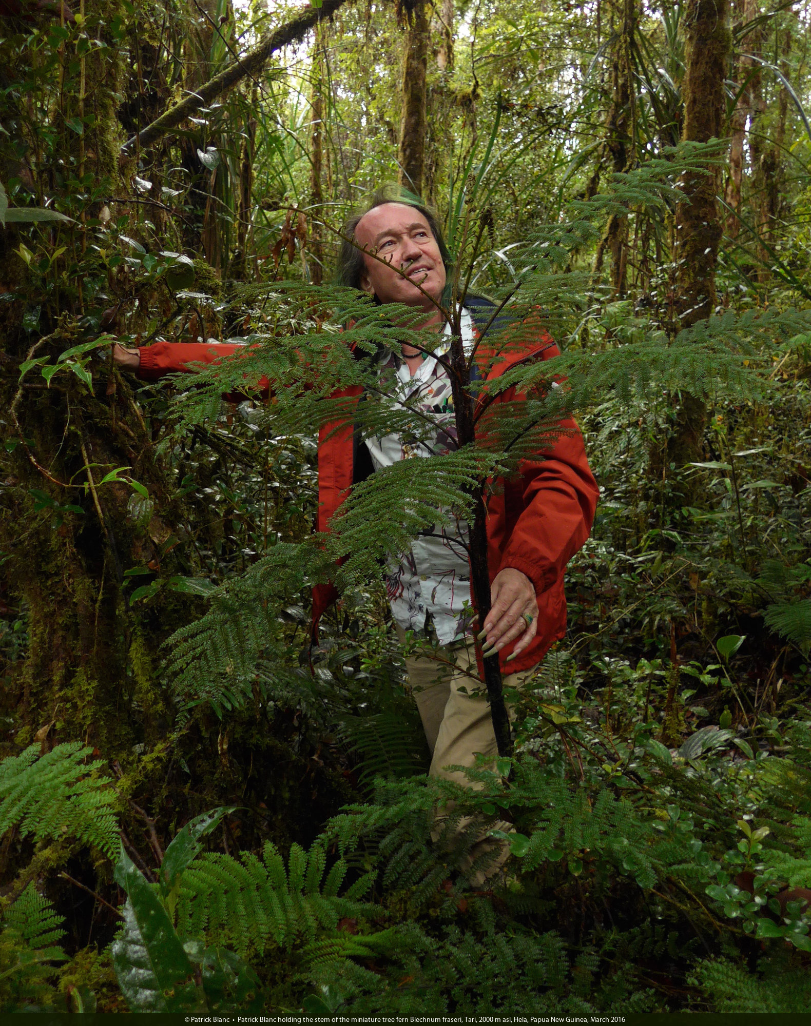 Patrick Blanc in the mossy forest,Tari, 2000 m asl, Hela, Papua New Guinea, March 2016
