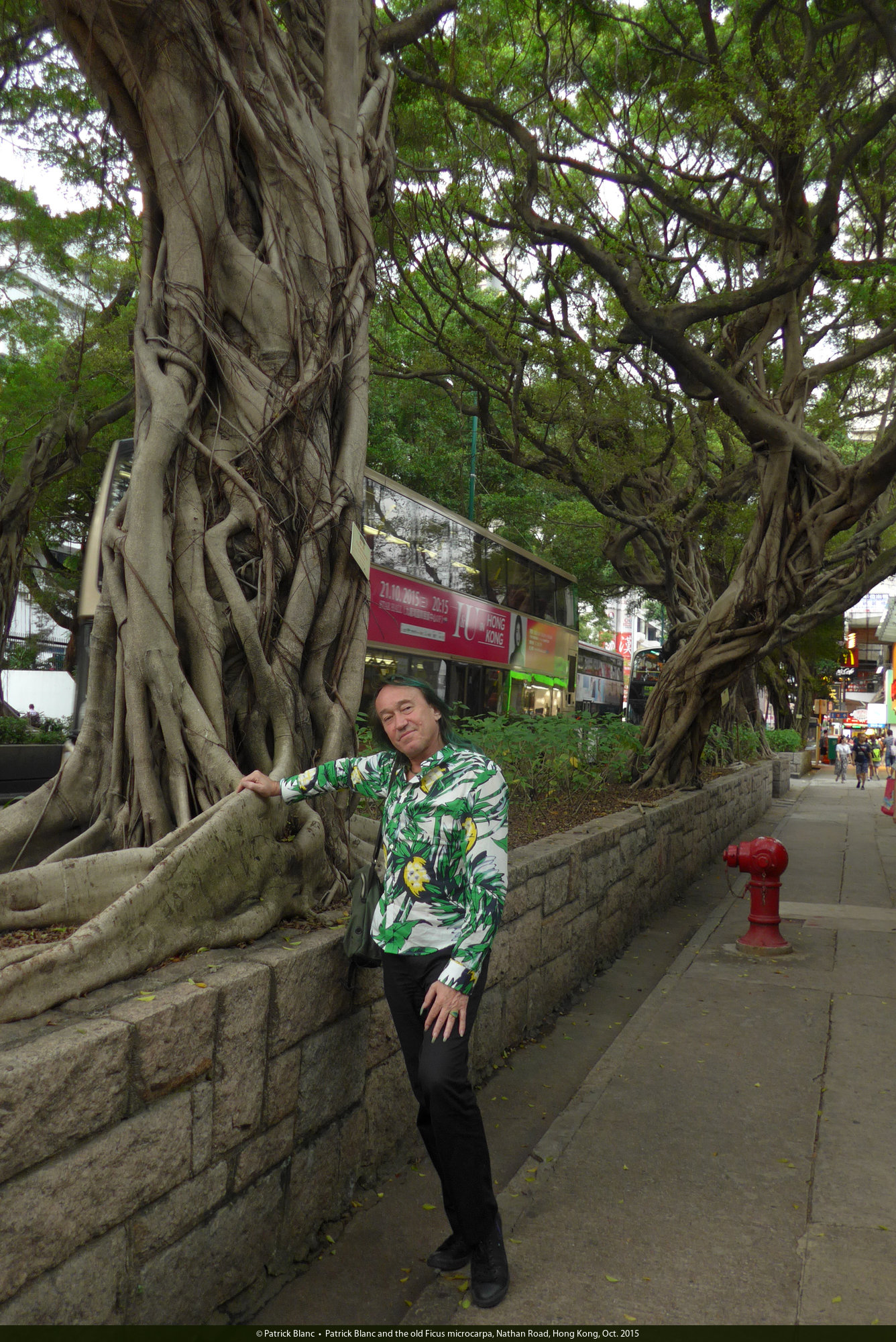 Patrick Blanc and the old Ficus microcarpa, Nathan Road, Hong Kong, Oct. 2015