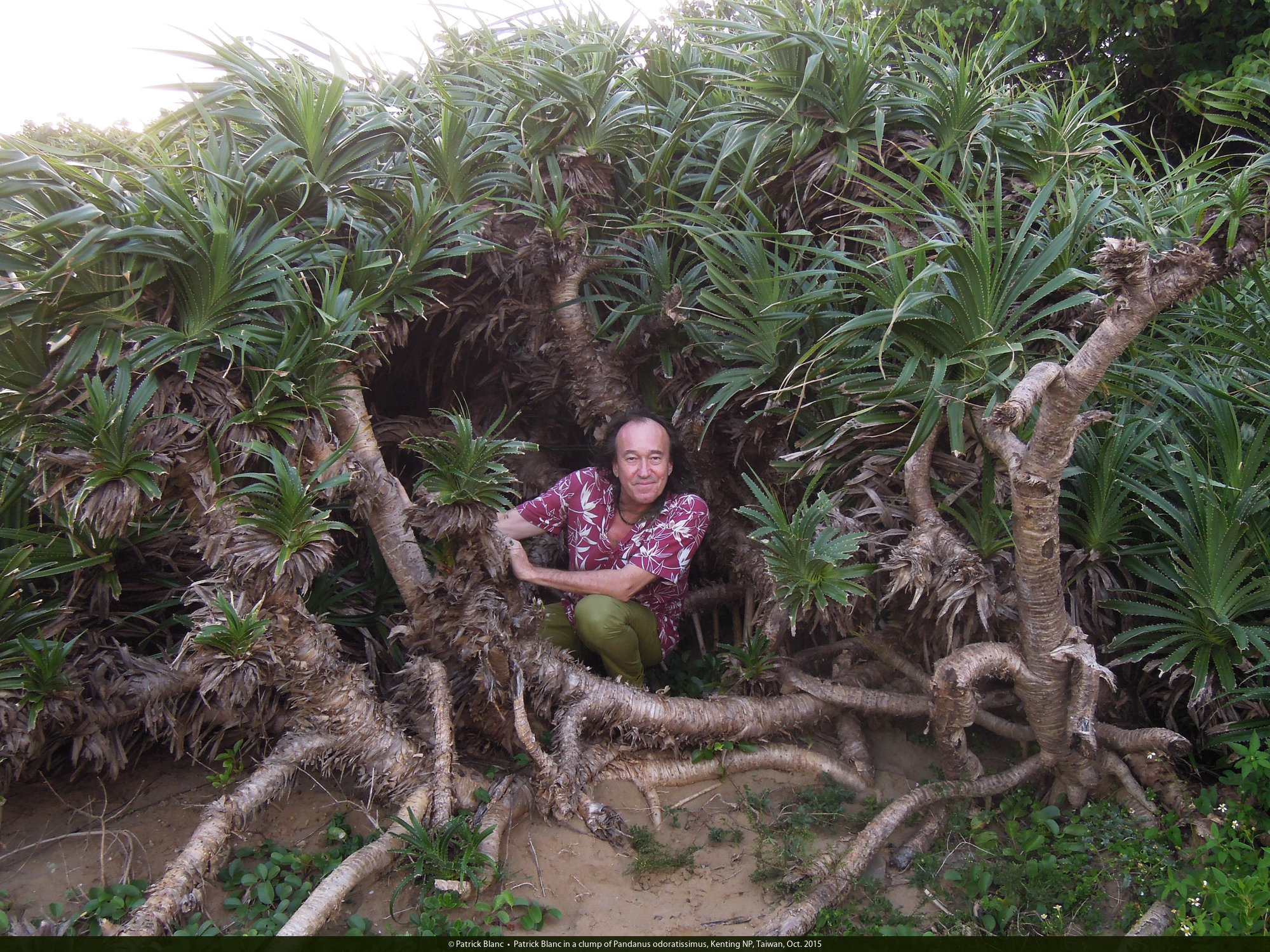 Patrick Blanc in a clump of Pandanus odoratissimus, Kenting NP, Taiwan, Oct. 2015