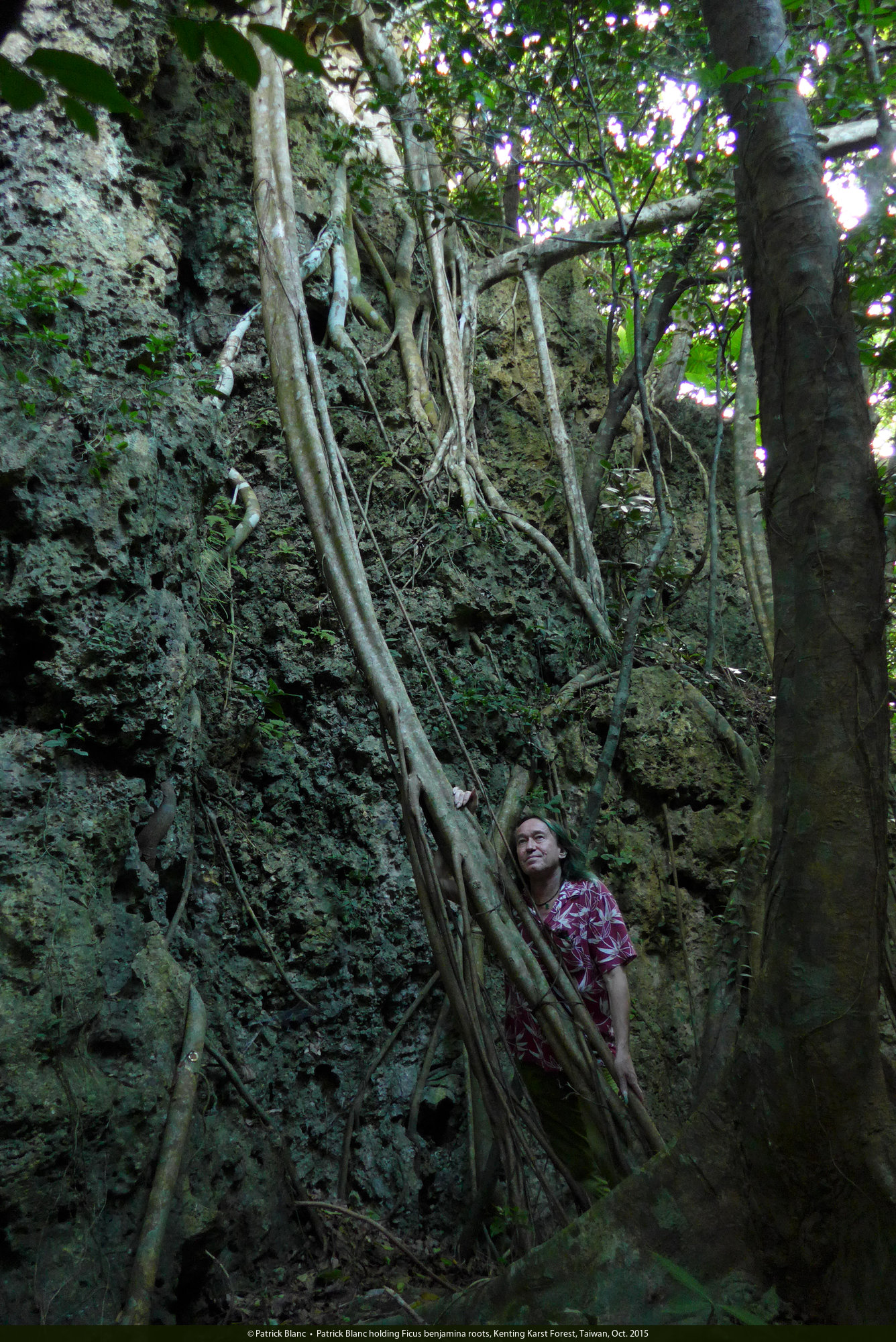 Patrick Blanc holding Ficus benjamina roots, Kenting Karst Forest, Taiwan, Oct. 2015