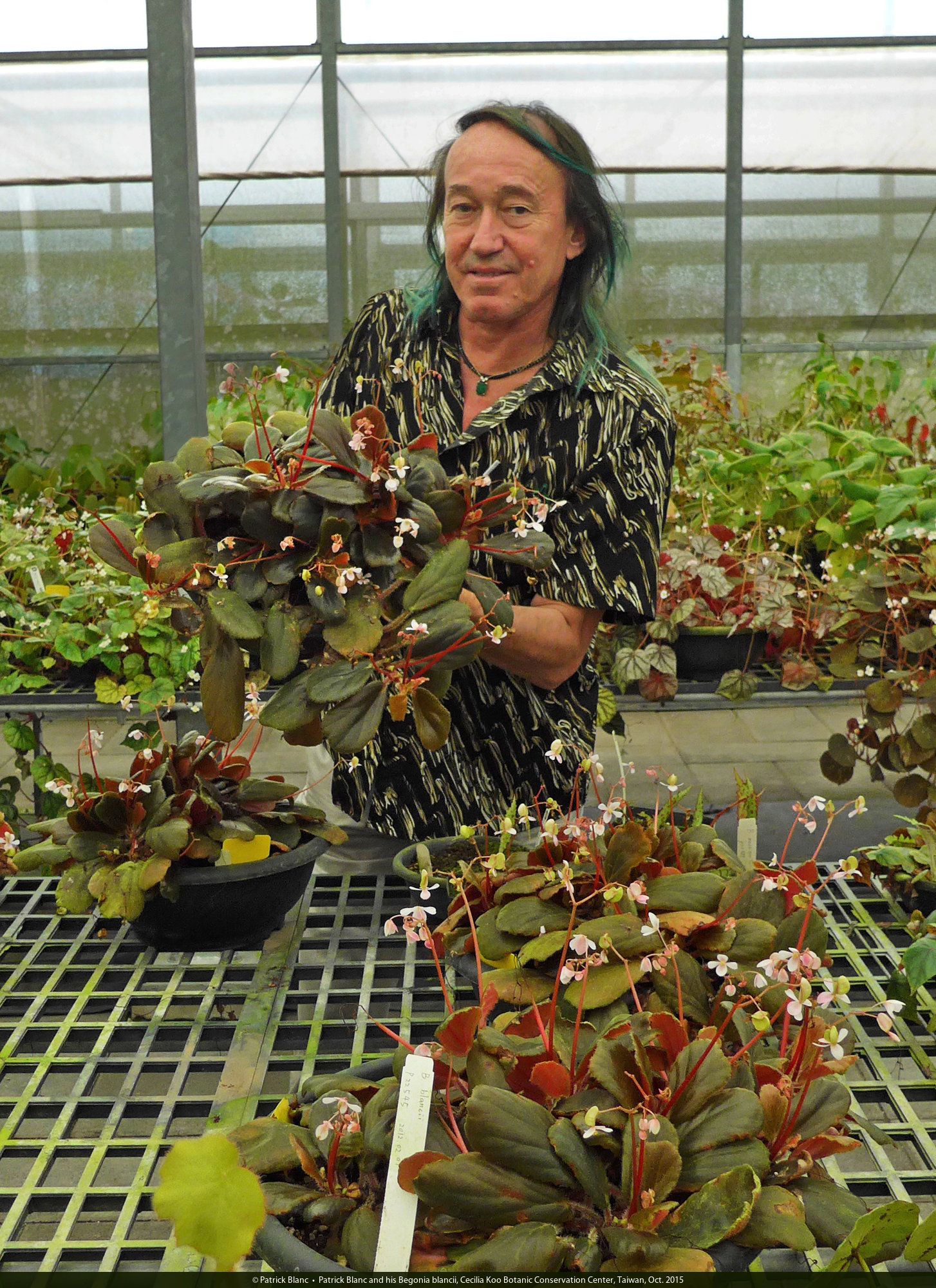 Patrick Blanc and his Begonia blancii, Cecilia Koo Botanic Conservation Center, Taiwan, Oct. 2015