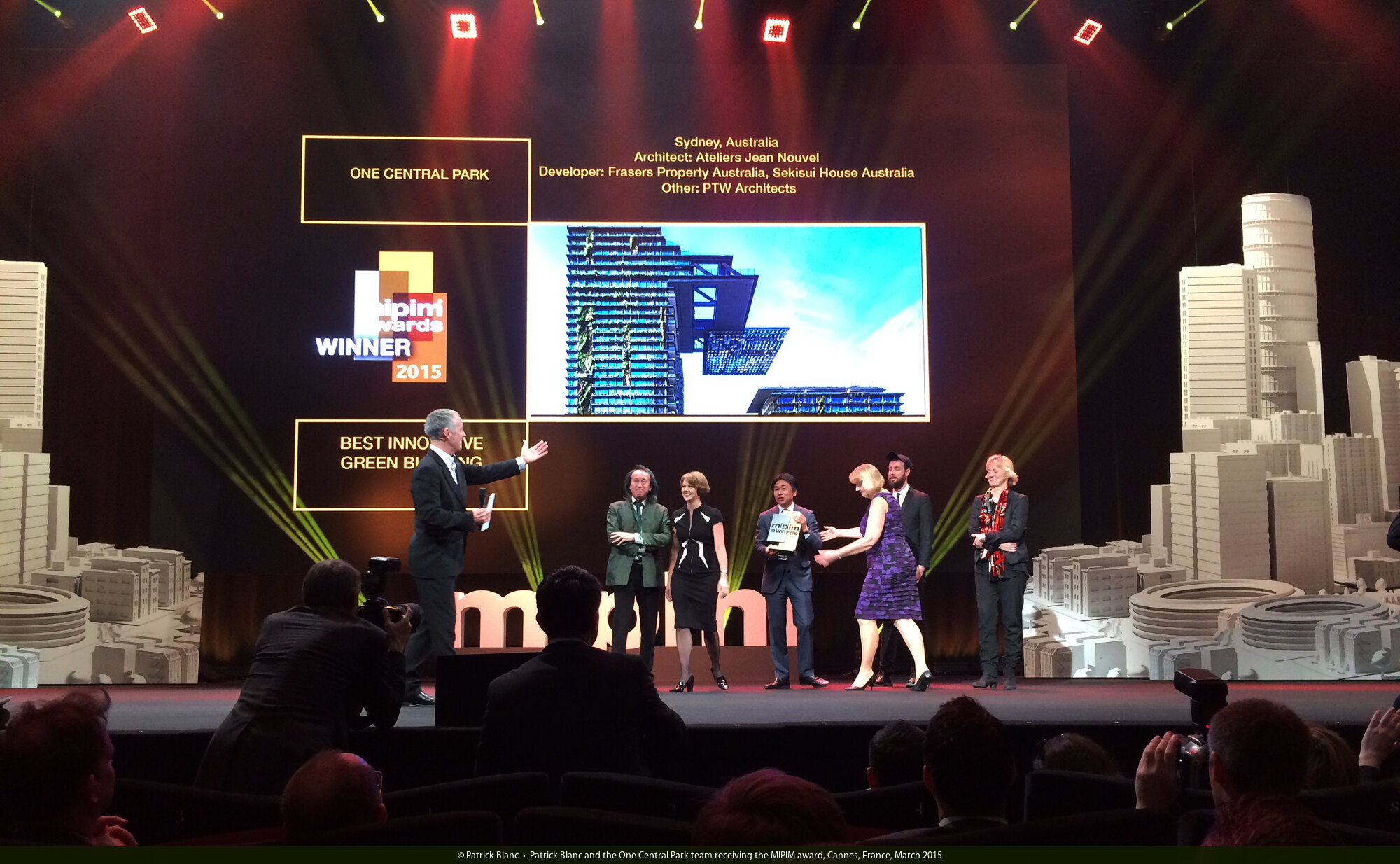 Patrick Blanc and the One Central Park team receiving the MIPIM award, Cannes, France, March 2015