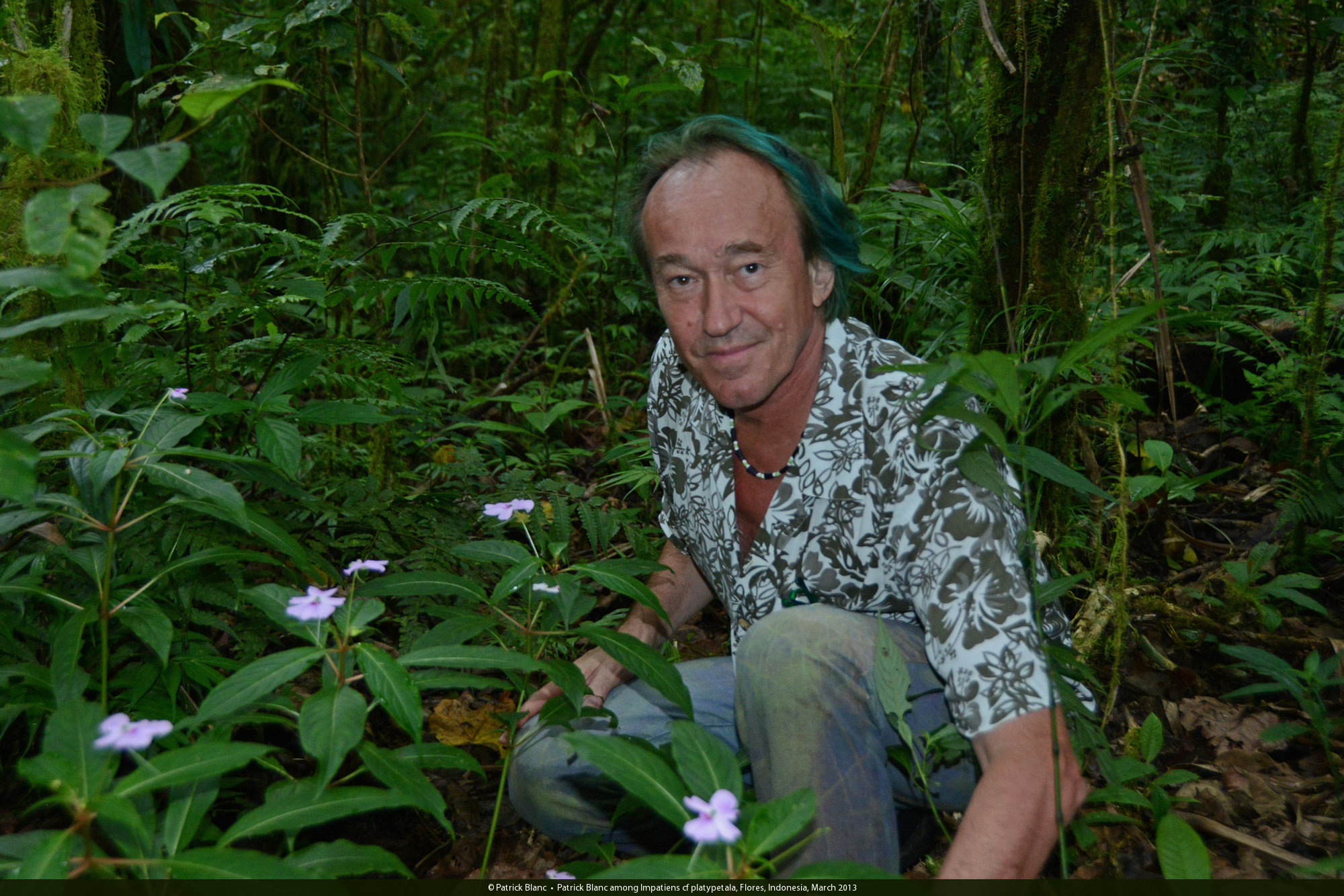 Patrick Blanc among Impatiens cf platypetala, Flores, Indonesia, March 2013
